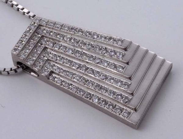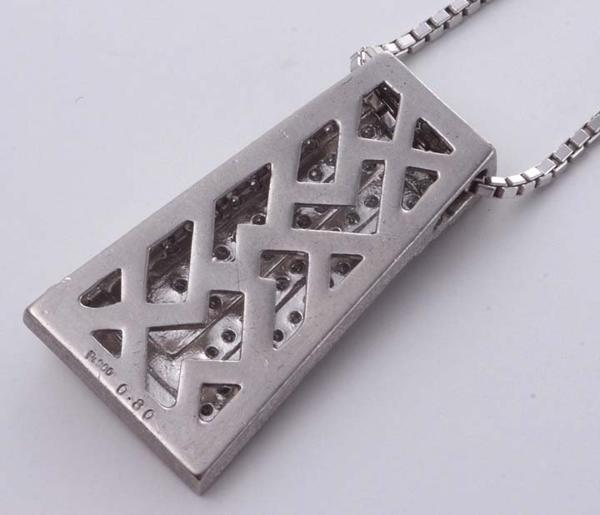 コメント | [[全ての商品に品質保証カードが付きますのでご安心ください]] ポーラ製ですので、品質の確かなものです。 透明感と輝きのあるダイアがキラキラと綺麗に輝いています。 側面の写真を載せました、左右非対称のデザインが秀逸です。 プラチナをたっぷり使ったとても贅沢な造りです。 側面は極細の梨地仕上げです。 裏面には細かいキズが見られます。気になさる方には磨き上げをいたしますが、1グラム程度プラチナ重量が目減りするかも知れませんので、ご了解いただければ無料で承ります。 このネックレスはトップと分離できない仕様です。 |