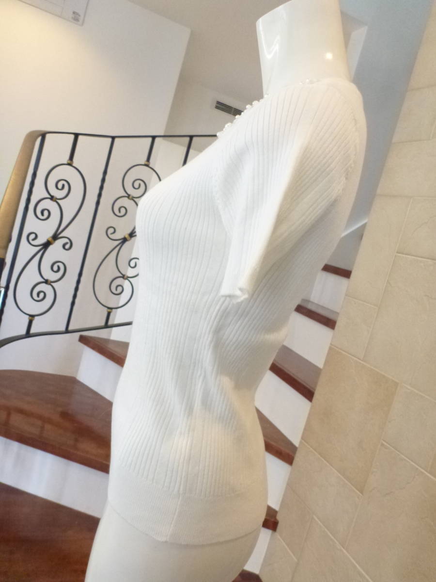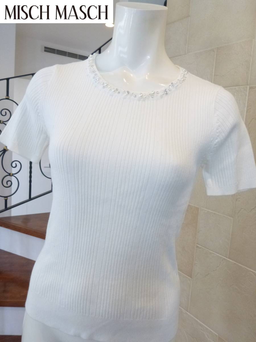 美品 MISCH MASCH (ミッシュマッシュ)★白 ビジュー 半袖 セーター M