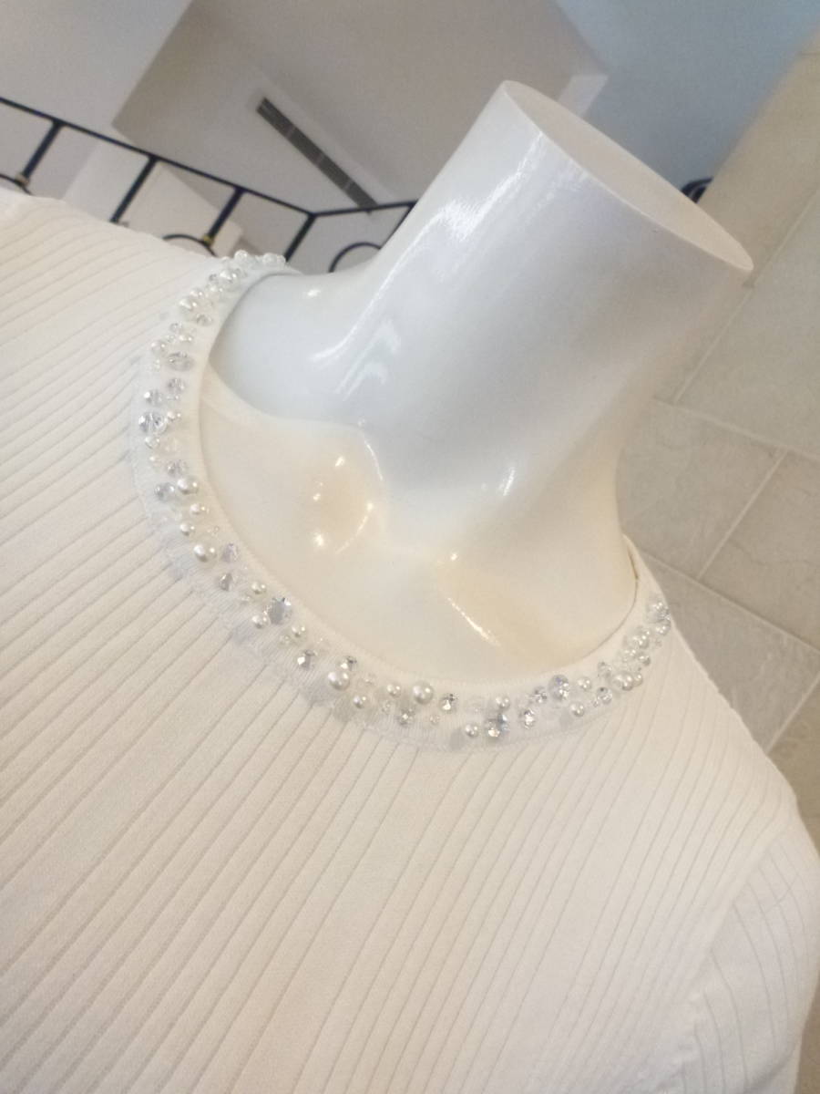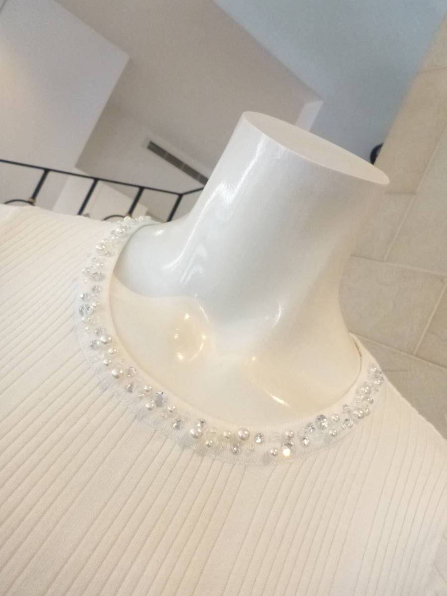 ◆白 ビジュー 半袖 セーター