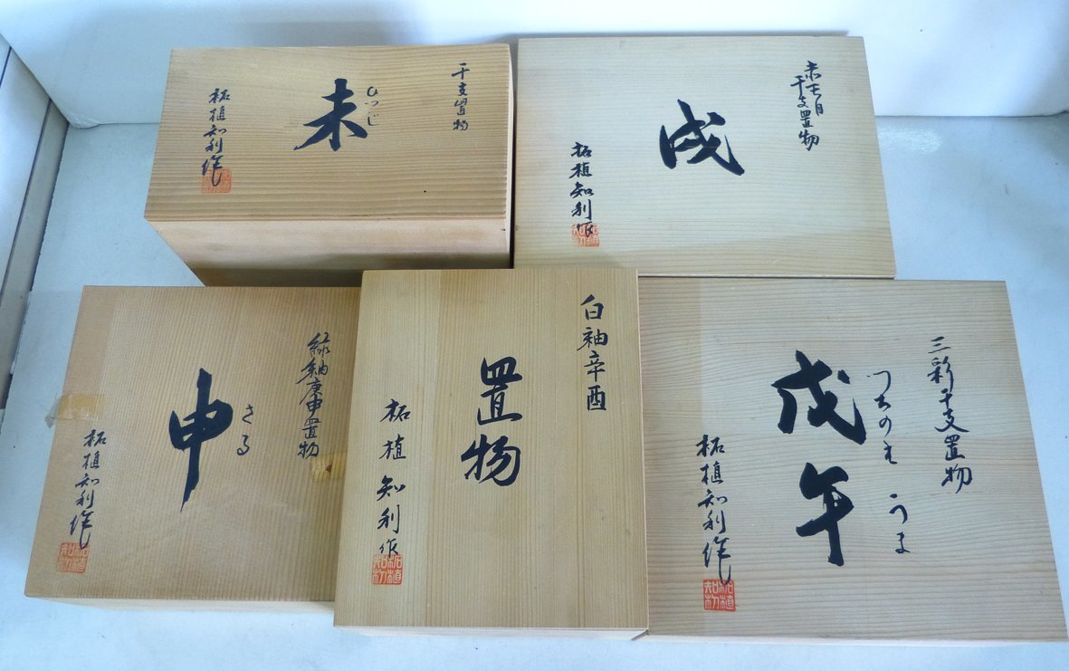 ☆縁起物!柘植知利/作 干支置物【午・羊・申・酉・戌】置物/インテリア/オブジェ 5個セット 木箱入り USED品☆ | |