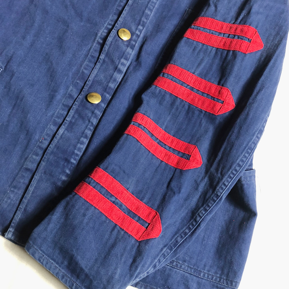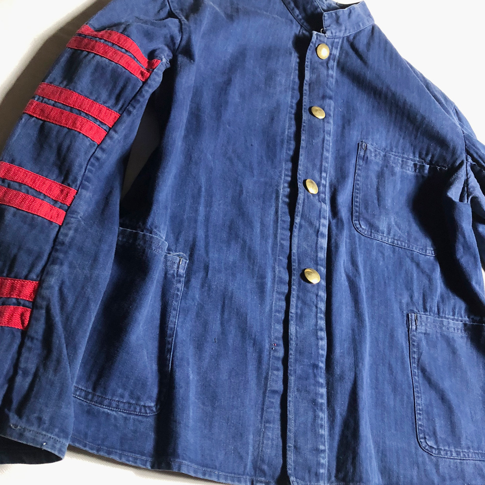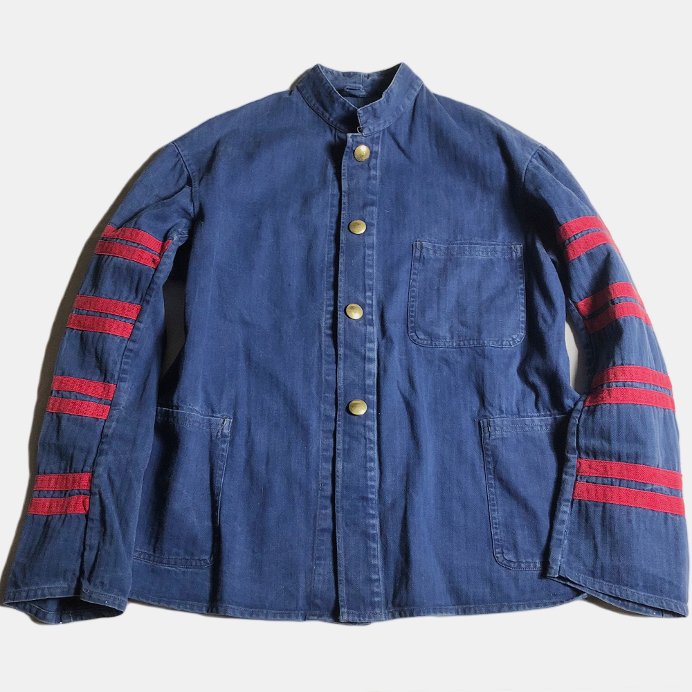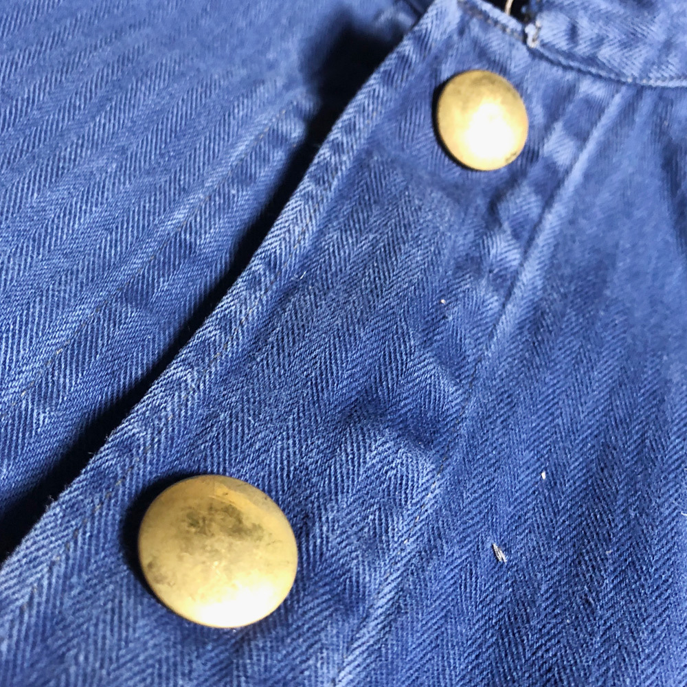 幻級! 30's 40's ジャーマン ファイヤーマン ジャケット ヘリンボーン HBT GERMAN FIREMAN JACKET ドイツ ブルー チェンジボタン メタル 着