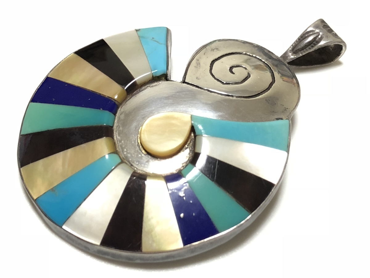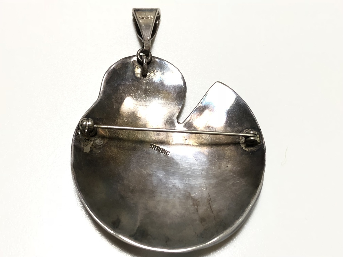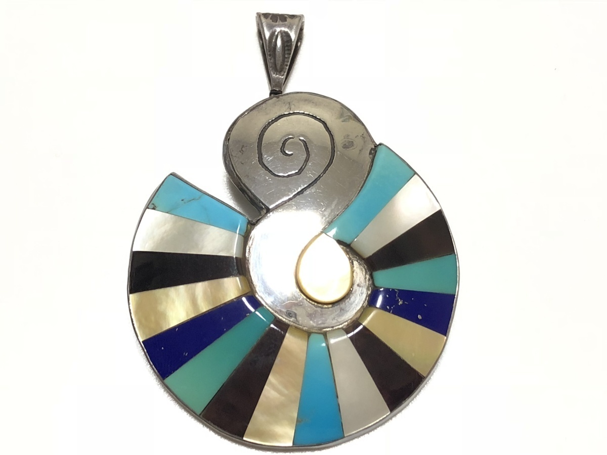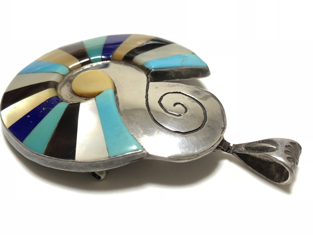 インディアンジュエリー ターコイズ ラピスラズリ 白蝶貝 黒蝶貝 STERLING SILVER 25.4g インレイ 2WAY デザイン ペンダントトップ兼ブロ