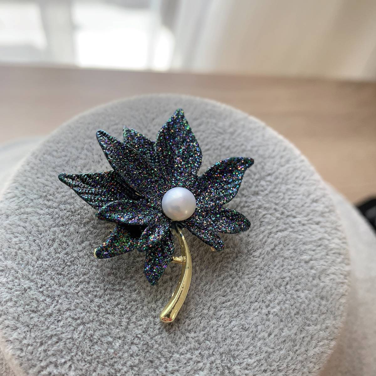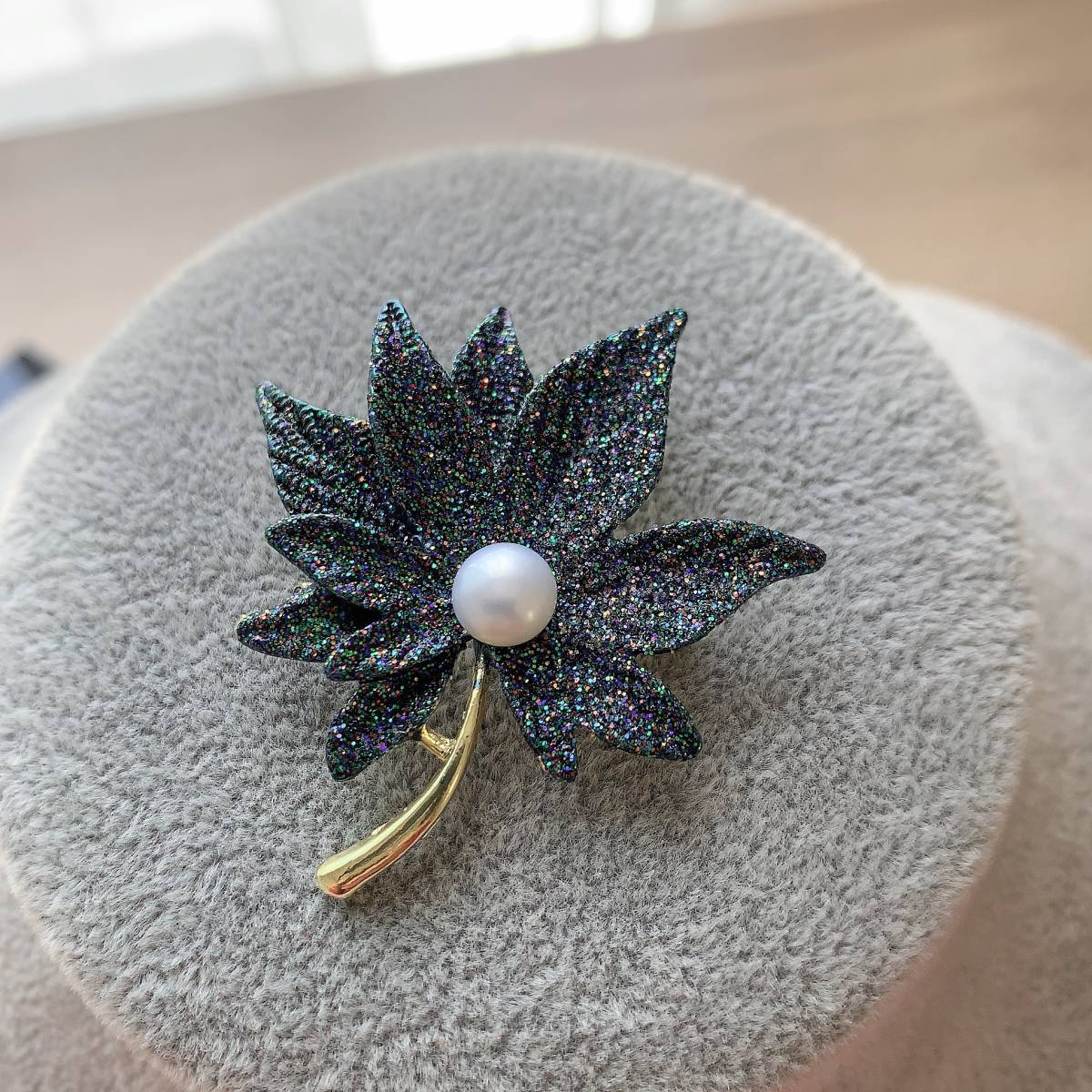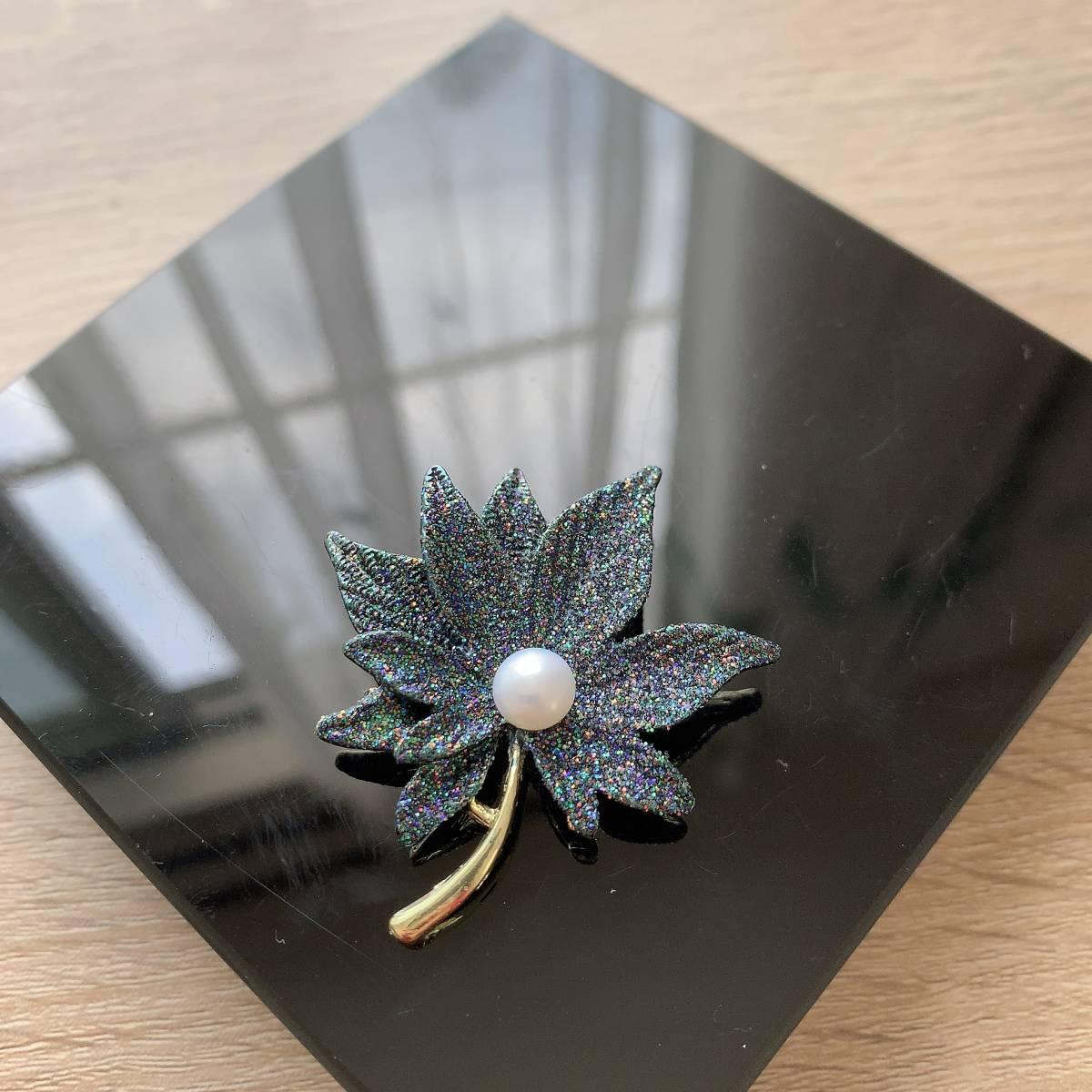 ブローチ☆紅葉形☆淡水真珠1粒☆プレゼントにもAC4608