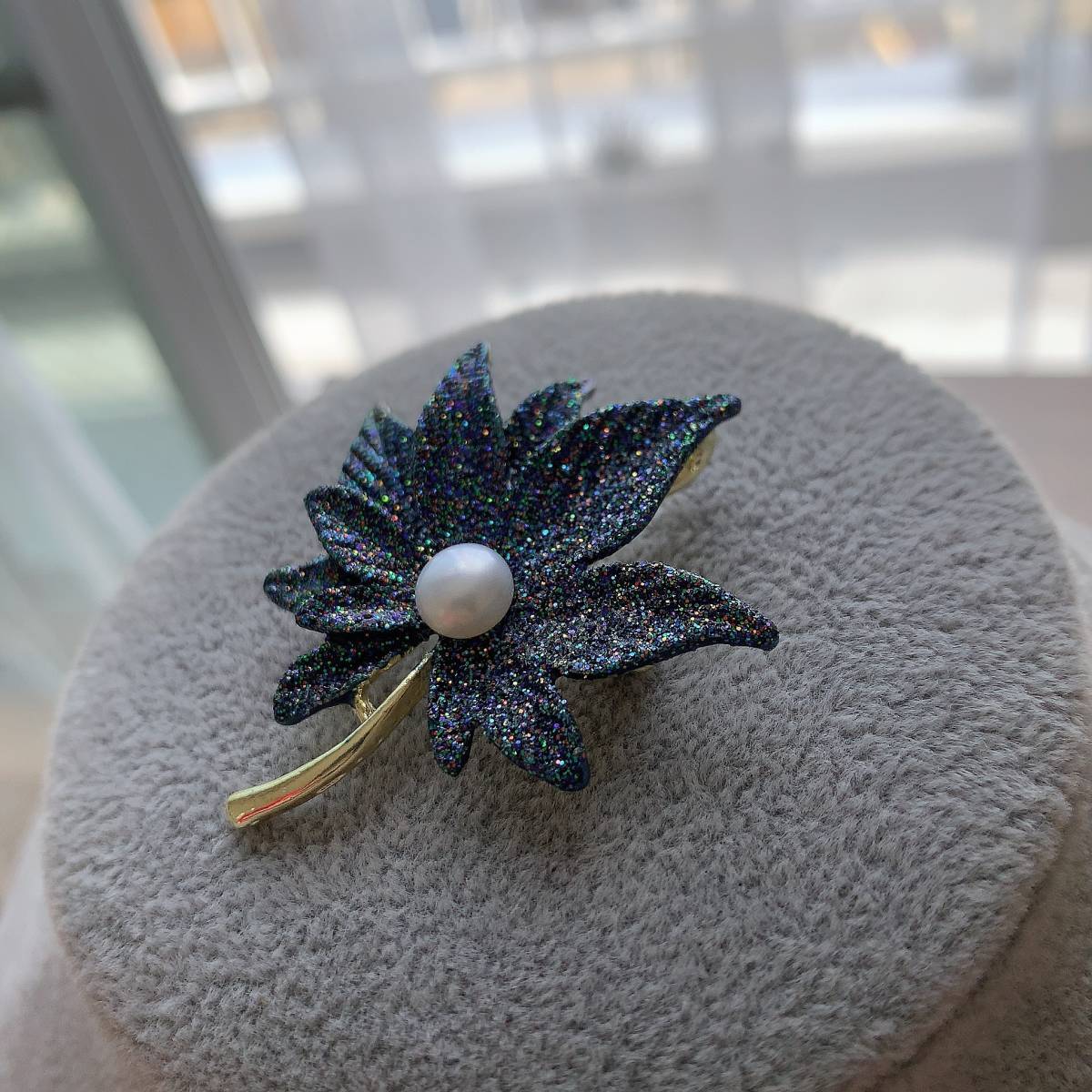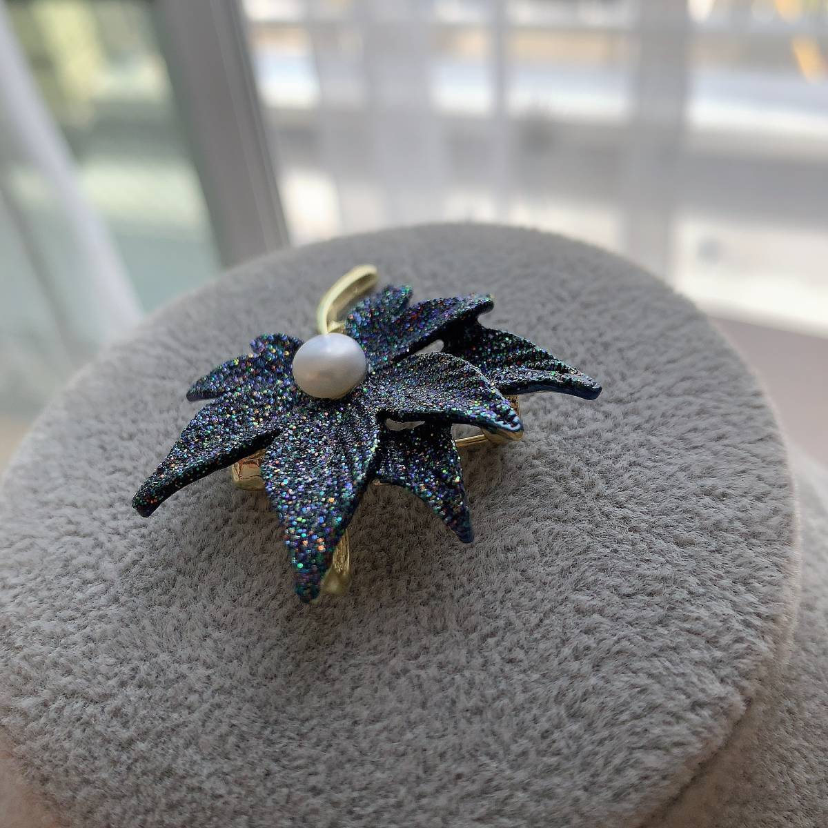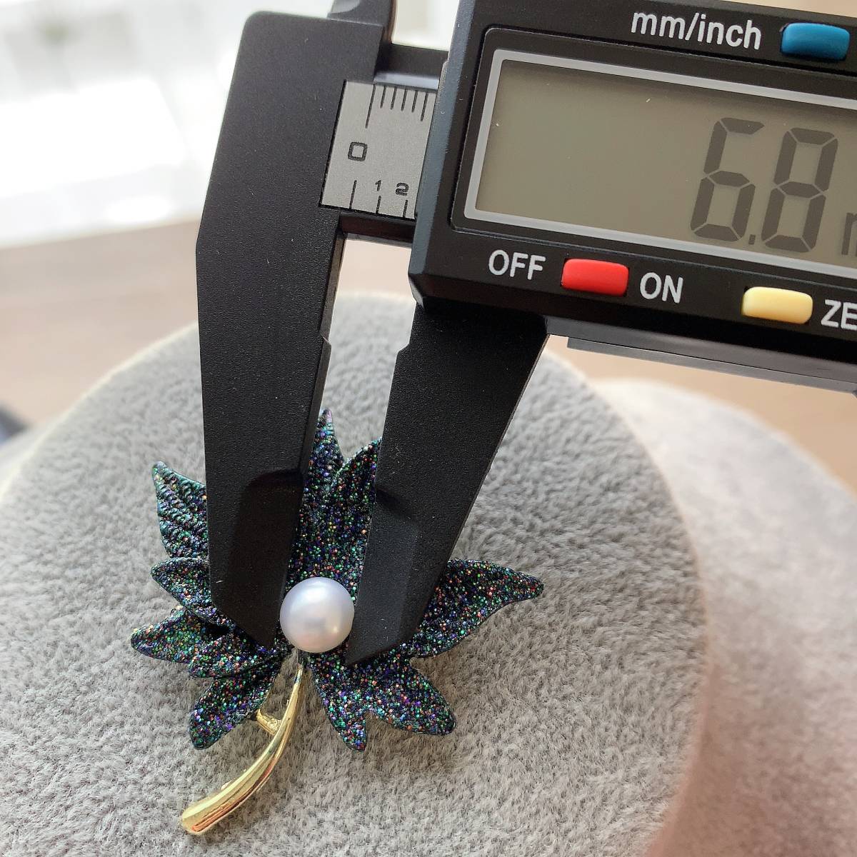ブローチ☆紅葉形☆淡水真珠1粒☆プレゼントにもAC4608