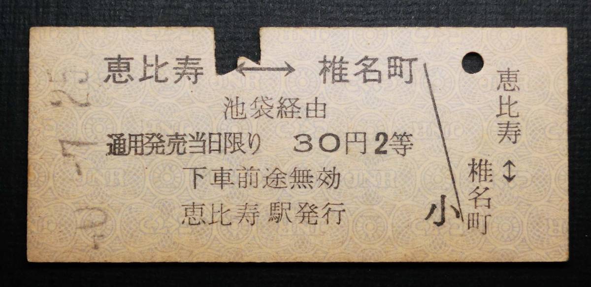 E23873 国鉄 連絡乗車券 B型 硬券 両矢式 恵比寿 池袋 椎名町 s40.7.25