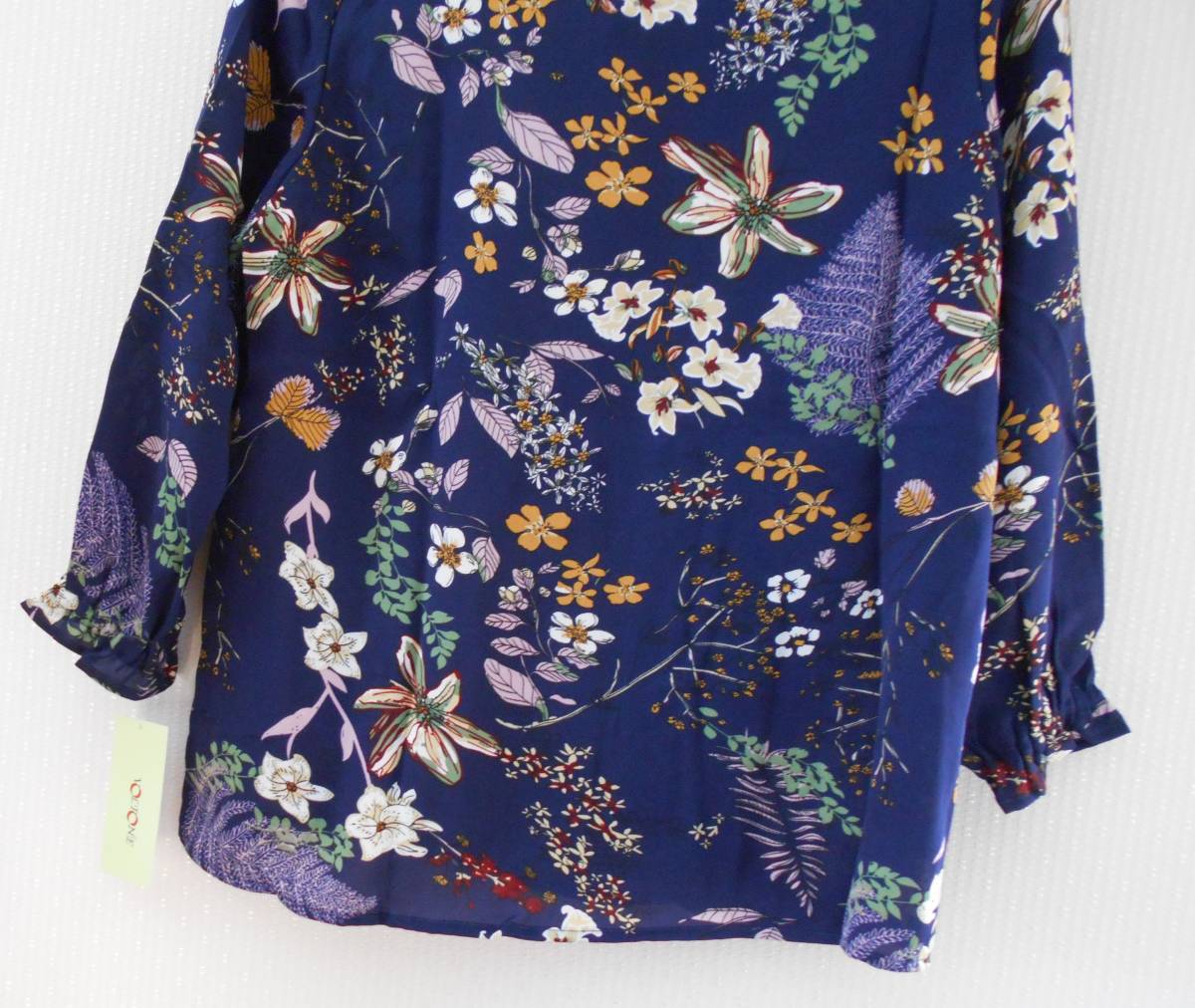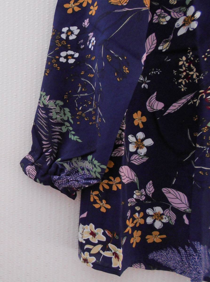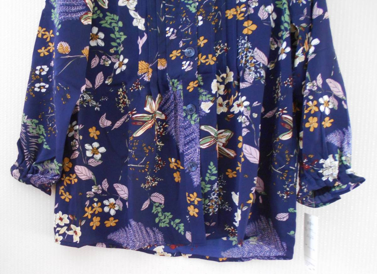【新品】ベルーナ レディース ピンタック使い花柄プリントブラウス Mサイズ ネイビー
