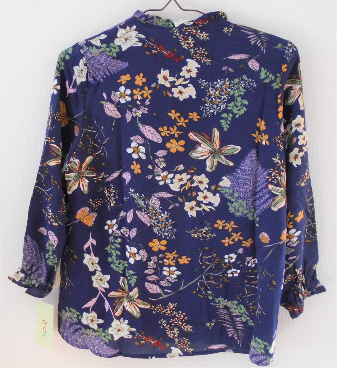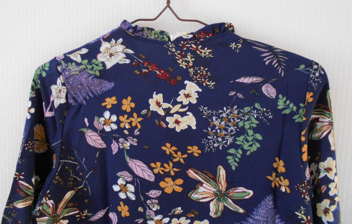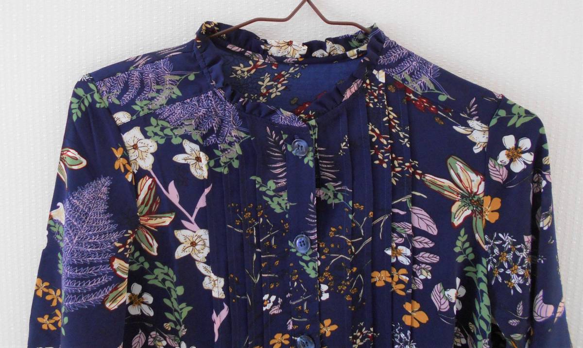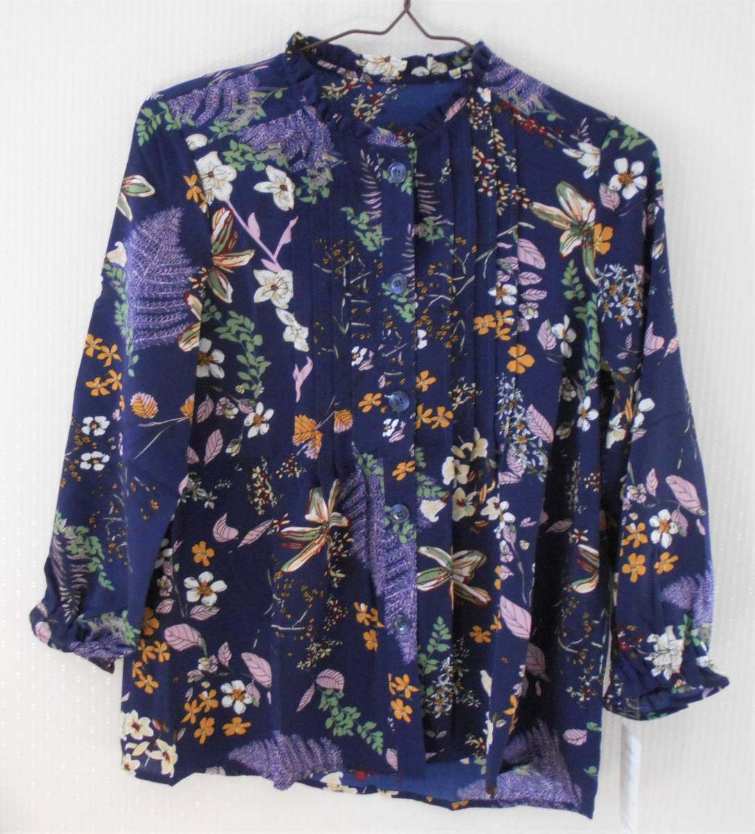 【新品】ベルーナ レディース ピンタック使い花柄プリントブラウス Mサイズ ネイビー