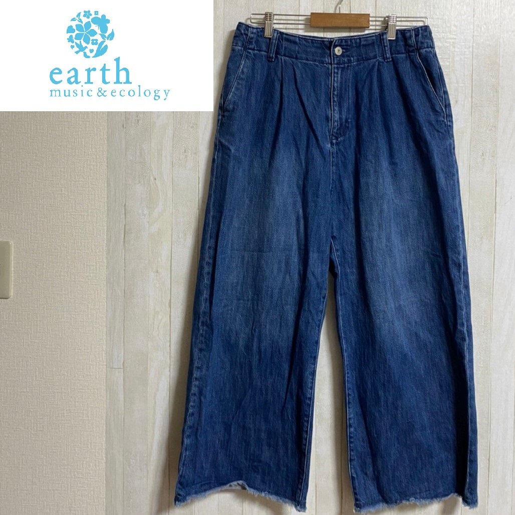 | earth music&ecology★アースミュージックアンドエコロジー★フリンジクロップドデニムワイドパンツ★サイズL | |||