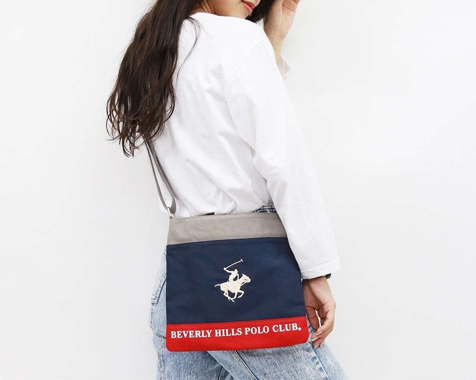 ポニーの刺繍が印象的な、スクエアフォルムのショルダーバッグすっきりしたタイトな着用感ながらも、内ポケットも充実している便利なバッグシンプルなデザインですので、ユニセックスでお使いいただけます。カラー:ネイビー本体:コットンキャンバス仕様:ファスナー開閉、内側 ファスナーポケットx1、オープンポケットx2重量:約273g本体サイズ:本体:約横28.5×縦26.5×幅1cm ストラップ:長さ約6.8×134cm BEVERLY HILLS POLO CLUB1982年、ロサンゼルスの高級住宅街ビバリーヒルズで生まれたBEVERLY HILLS POLO CLUB(ビバリーヒルズポロクラブ)英国生まれの伝統競技 "ポロ"の持つトラディショナルマインドをベースに、ウエストコーストの陽気で明るく健康的なイメージがコンセプトです。