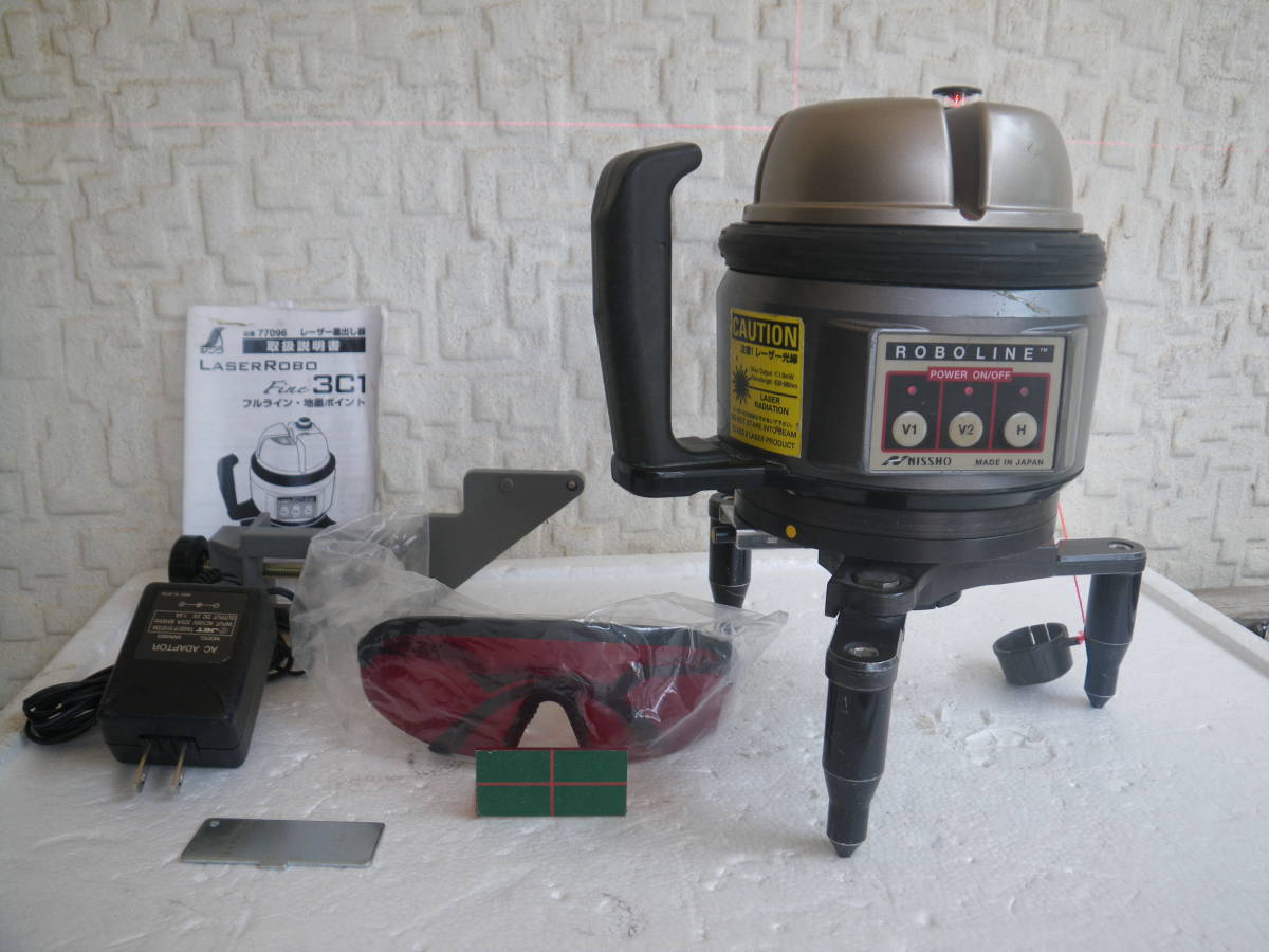 ニッショー ロボライン CP‐818レーザー墨出器 自動整準 縦.横.地墨.水平(オールライン)確認 傷.汚れ等有中古品 未校正品