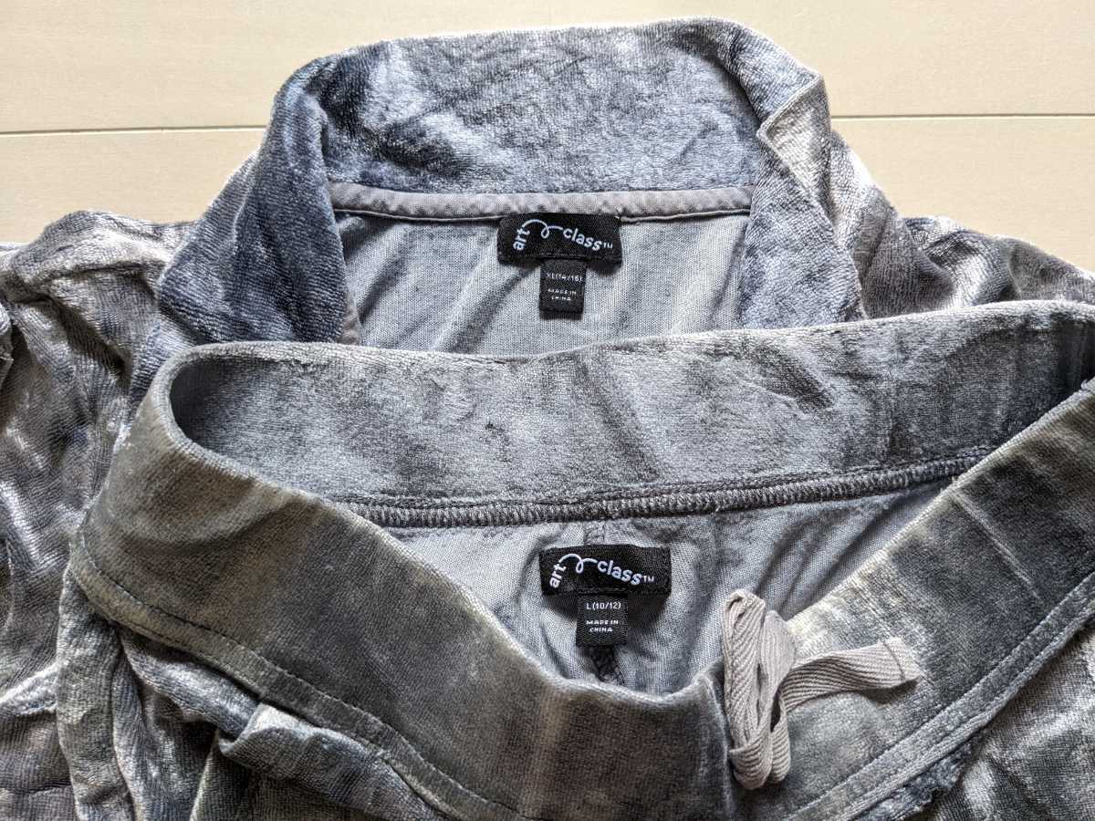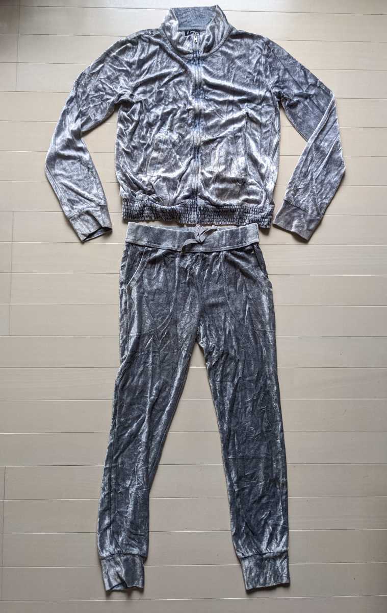 art class セットアップ 部屋着 ジャージ キッズ XL(14/16) レディースM ハワイで購入しました。 一度試着した程度です。てろっとした素材です。シルバーグレーって感じの色です。 上着はキッズ用14〜16、パンツは10〜12才用ですが、大人のMサイズ位の方も着用できると思います。 サイズ:150~160相当 平置きサイズ:肩幅36cm 身幅44cm そで丈60cm 着丈53cm W68cm 股上25cm 股下67cm |