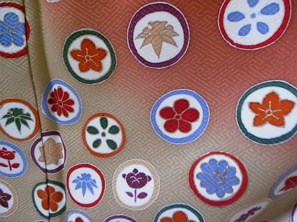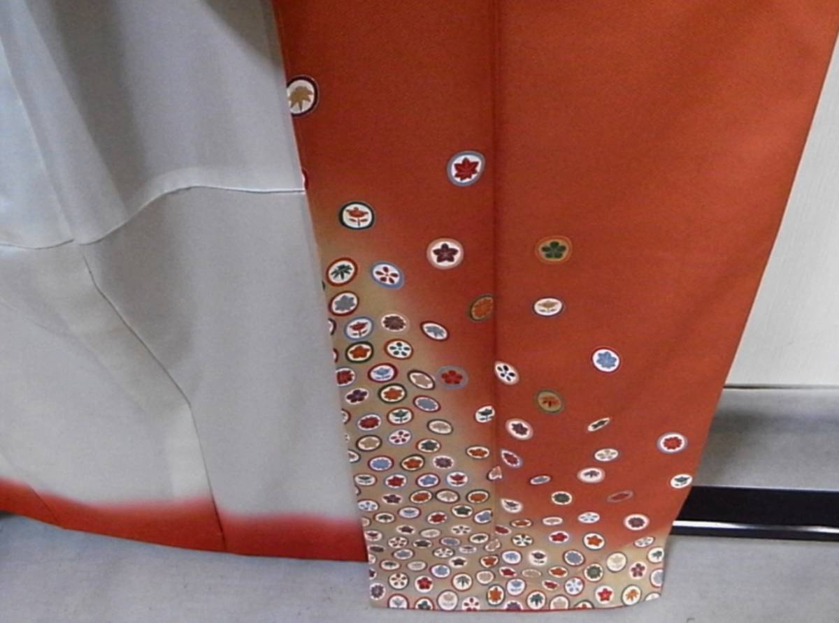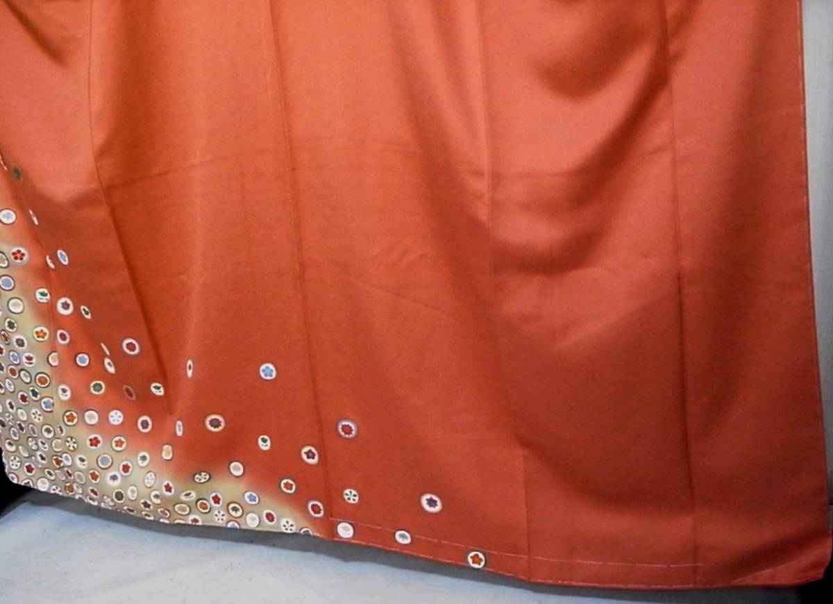 正絹綸子ちりめん 薄茶柿色地・裾ぼかし丸紋華紋模様