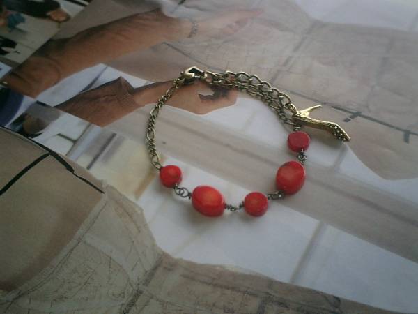ニューヨーク・デッサン・・シリーズです♪小粋な赤・・シックな珊瑚のブレスレットです♪深い赤の珊瑚にデザインチェーンを合わせて大人のロマンチックしています♪7ミリから11ミリ位の珊瑚のコインはランダムに繋いで可憐な表情です♪長さは全長23センチ位で調節自由です♪お揃いのブレスレットやネックレスも出品しています♪シンプルで飽きのこないいつまでも着けられるデザインを考えて作りました!ハンドメイドをご理解頂いてノークレーム、ノーリターンでお願いします