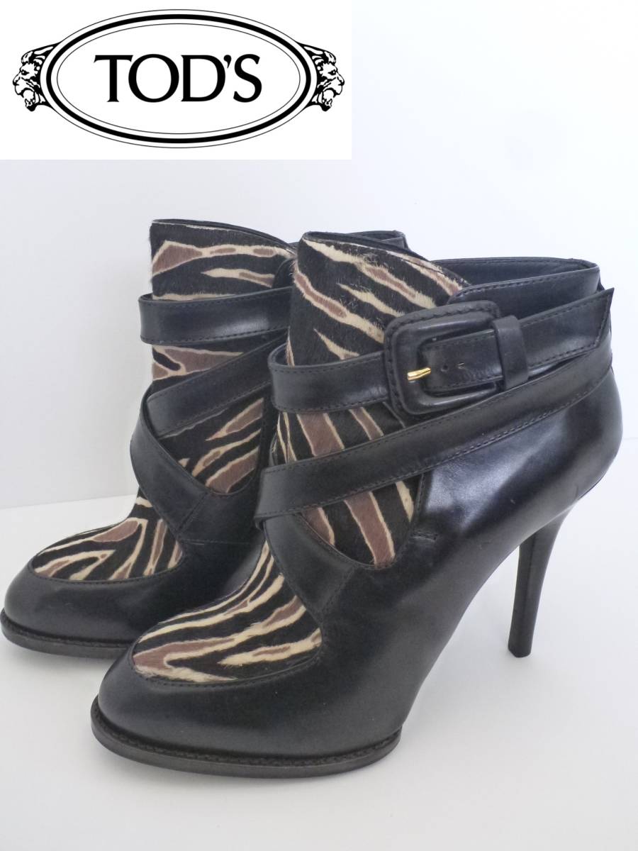 8万 美品 TODS/トッズ ★レザー×ハラコ素材 黒 ショートブーツ 35 1/2 22.5