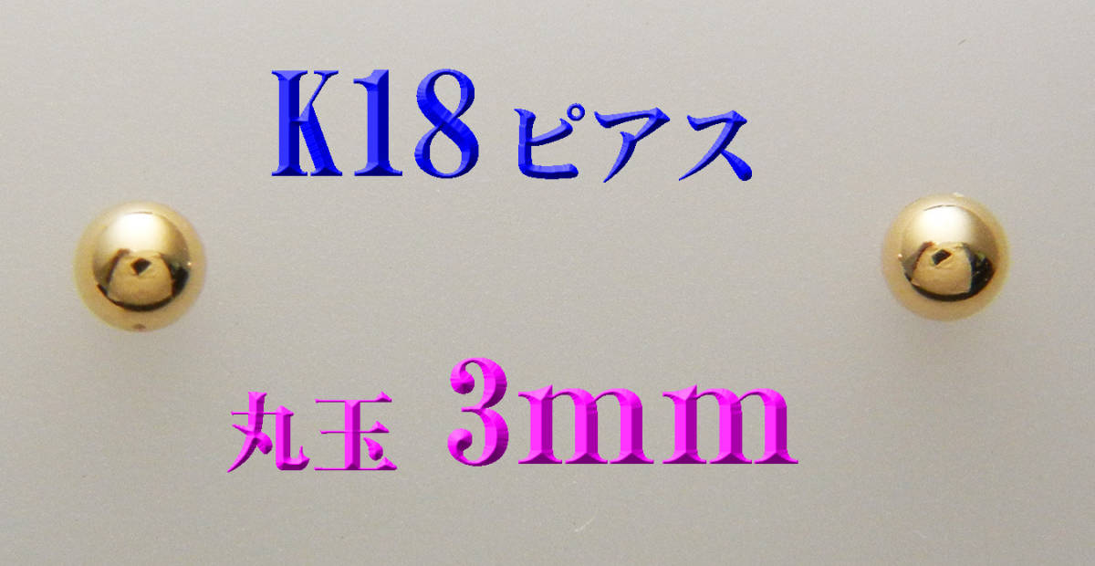 品名 K18YG 丸玉ピアス 1ペア ピアスの素材:K18イエローゴールド ピアスのサイズ約:外径3mm ポスト外径0.6mm K18刻有 |