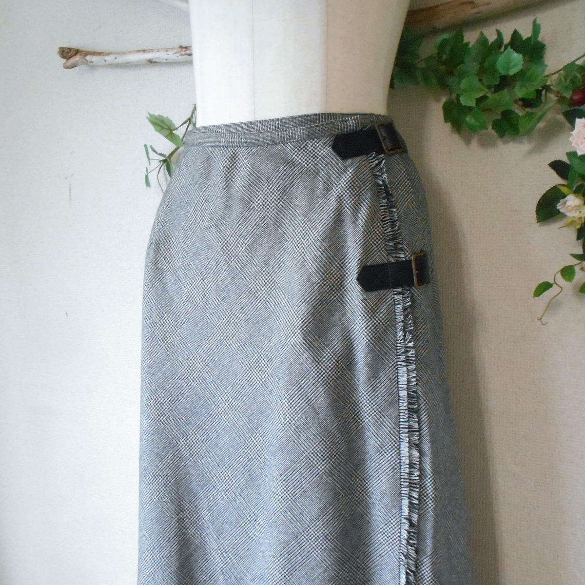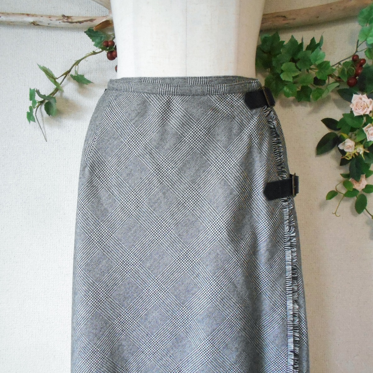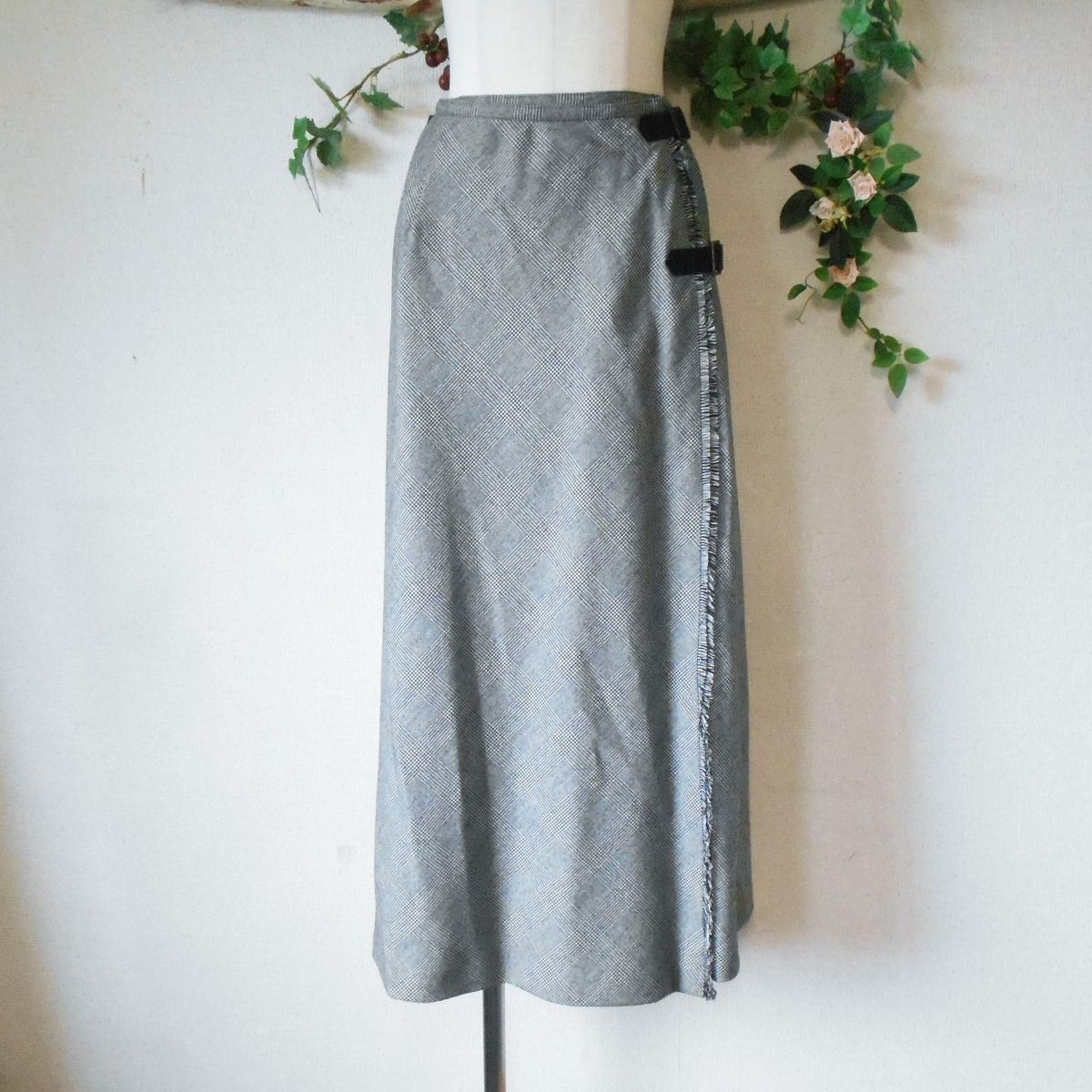 美品 カネコイサオ KANEKO ISAO 秋冬 向き グレンチェック ロング 丈 巻き スカート