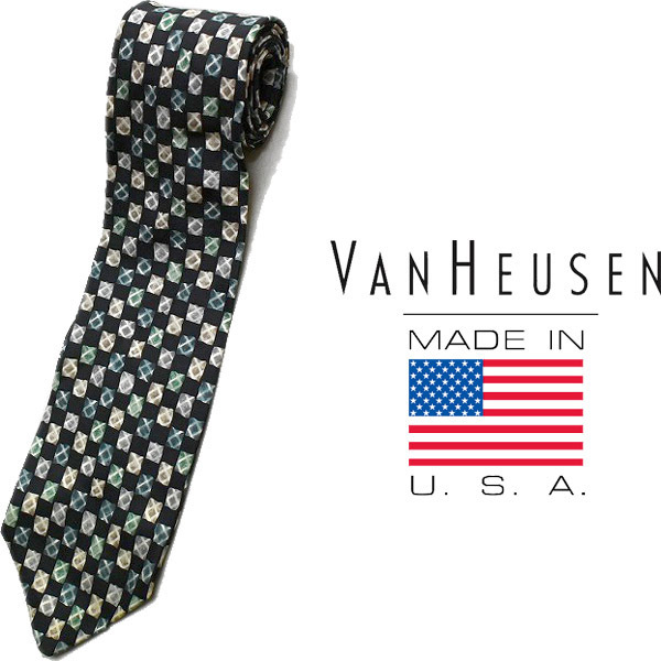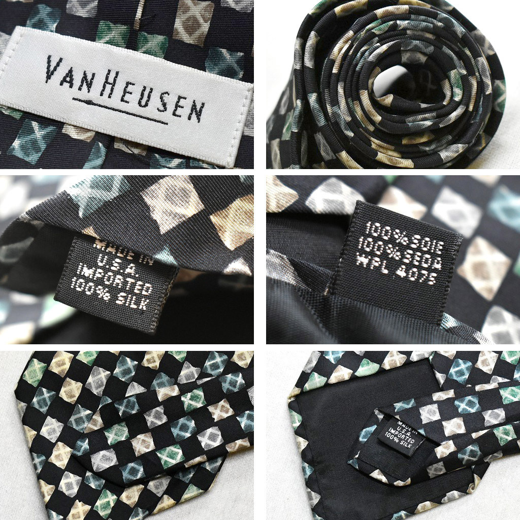 1点物◆USA製バンヒューゼンVAN HEUSEN黒シルク100%総柄ネクタイ古着メンズレディースOK90sストリート/スポーツMix小物ブランド雑貨512854