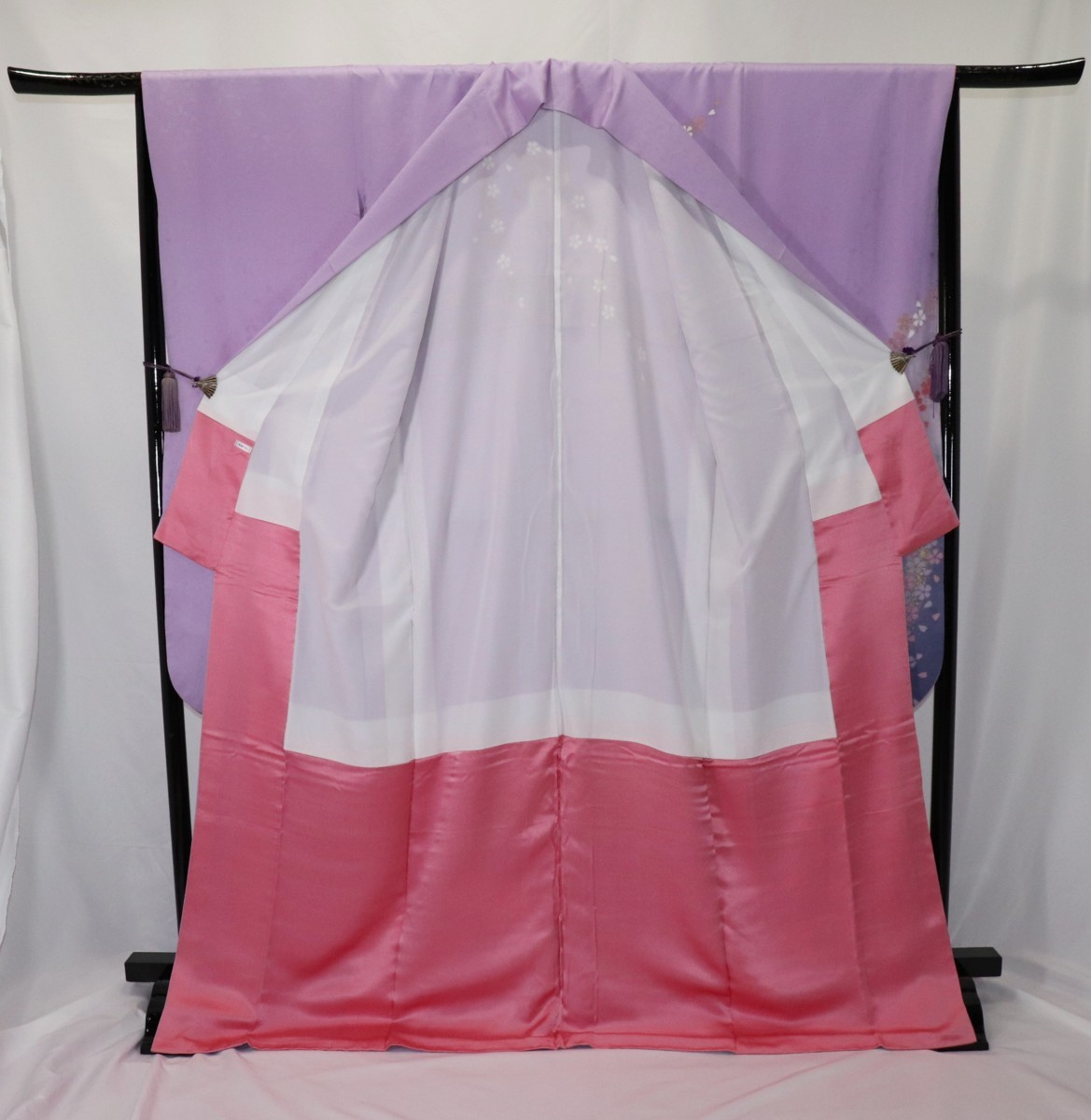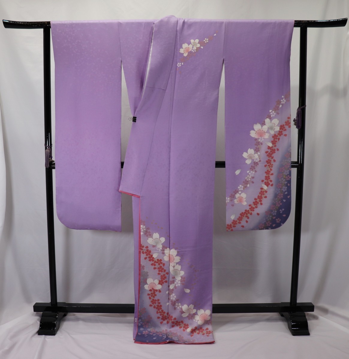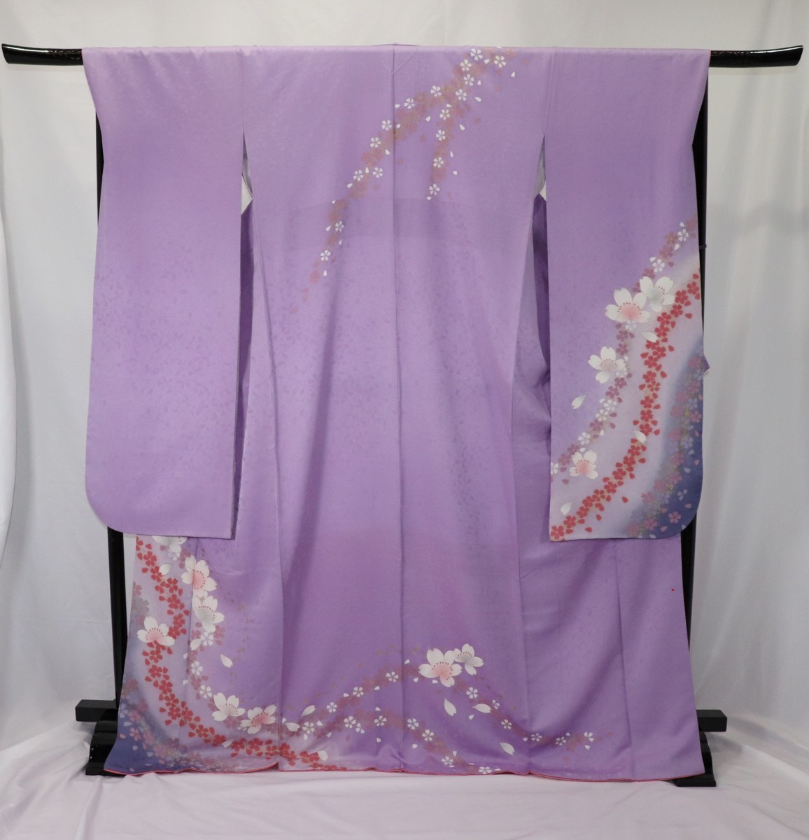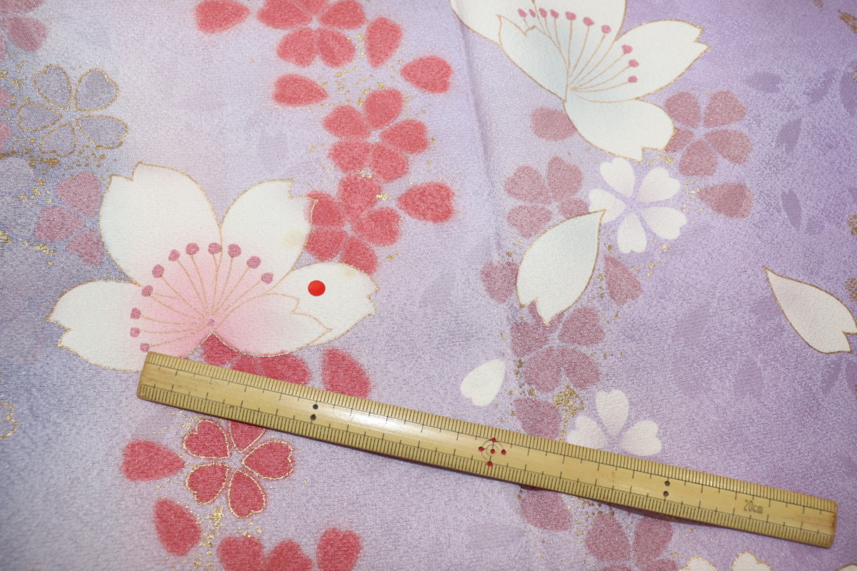| 振袖/正絹/藤色/桜/箔/パールトン加工済/仕立上がり |