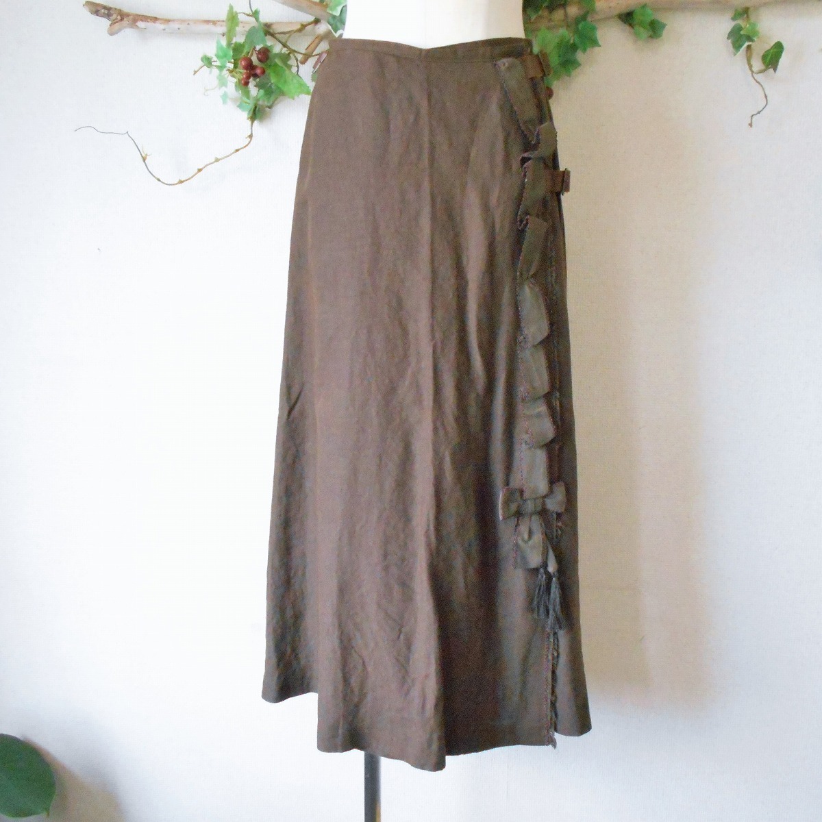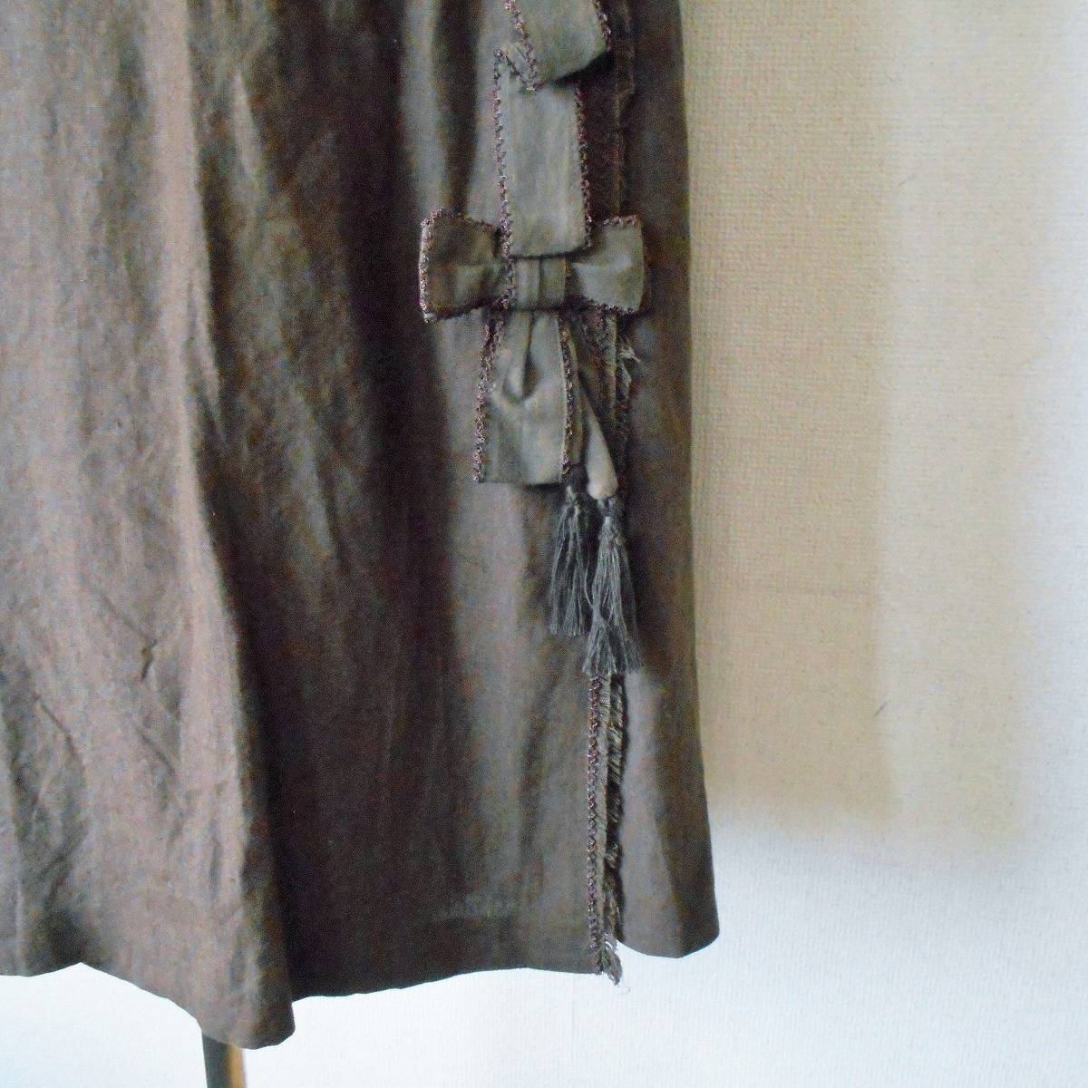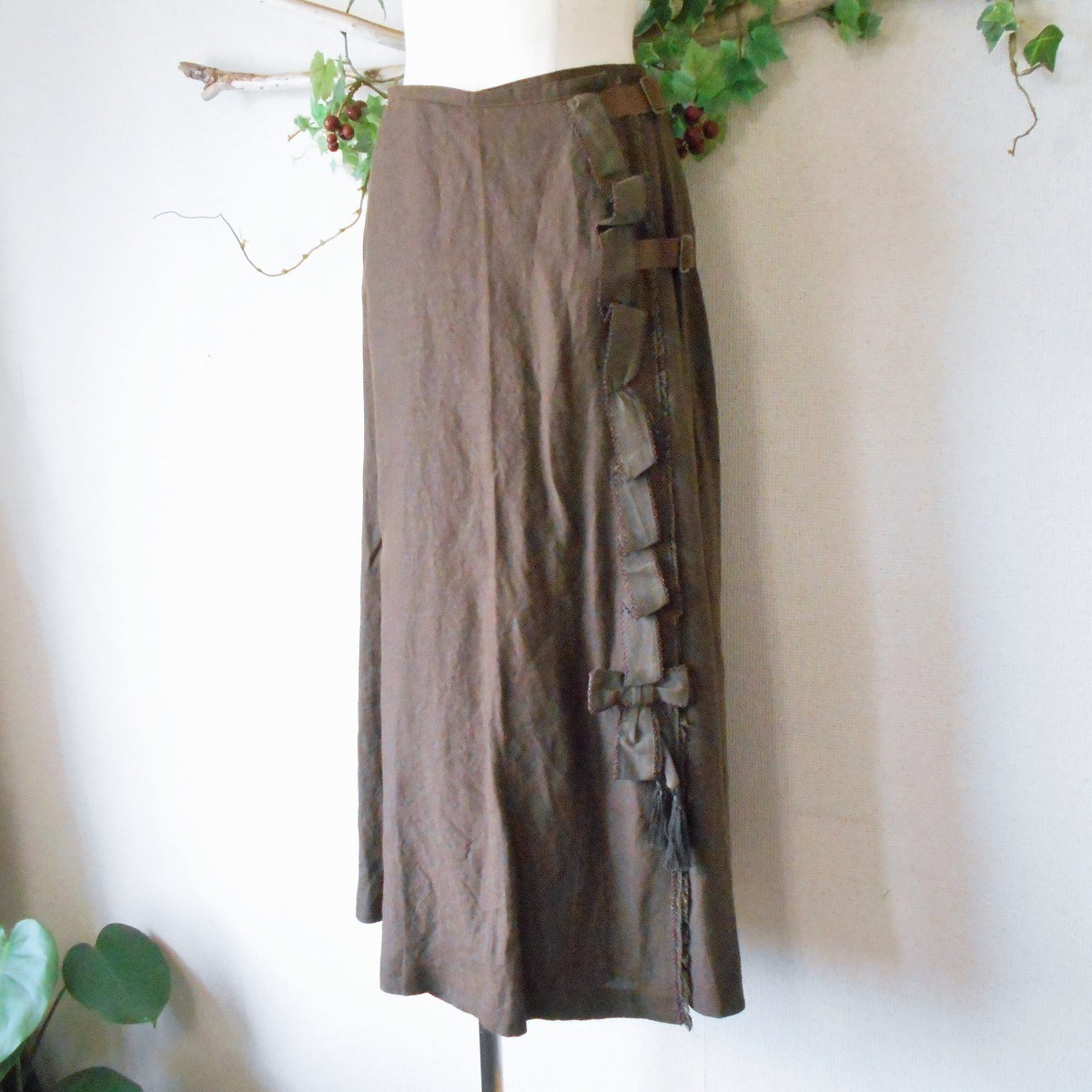 カネコイサオ KANEKO ISAO 麻 100% リボン 付 巻 スカート