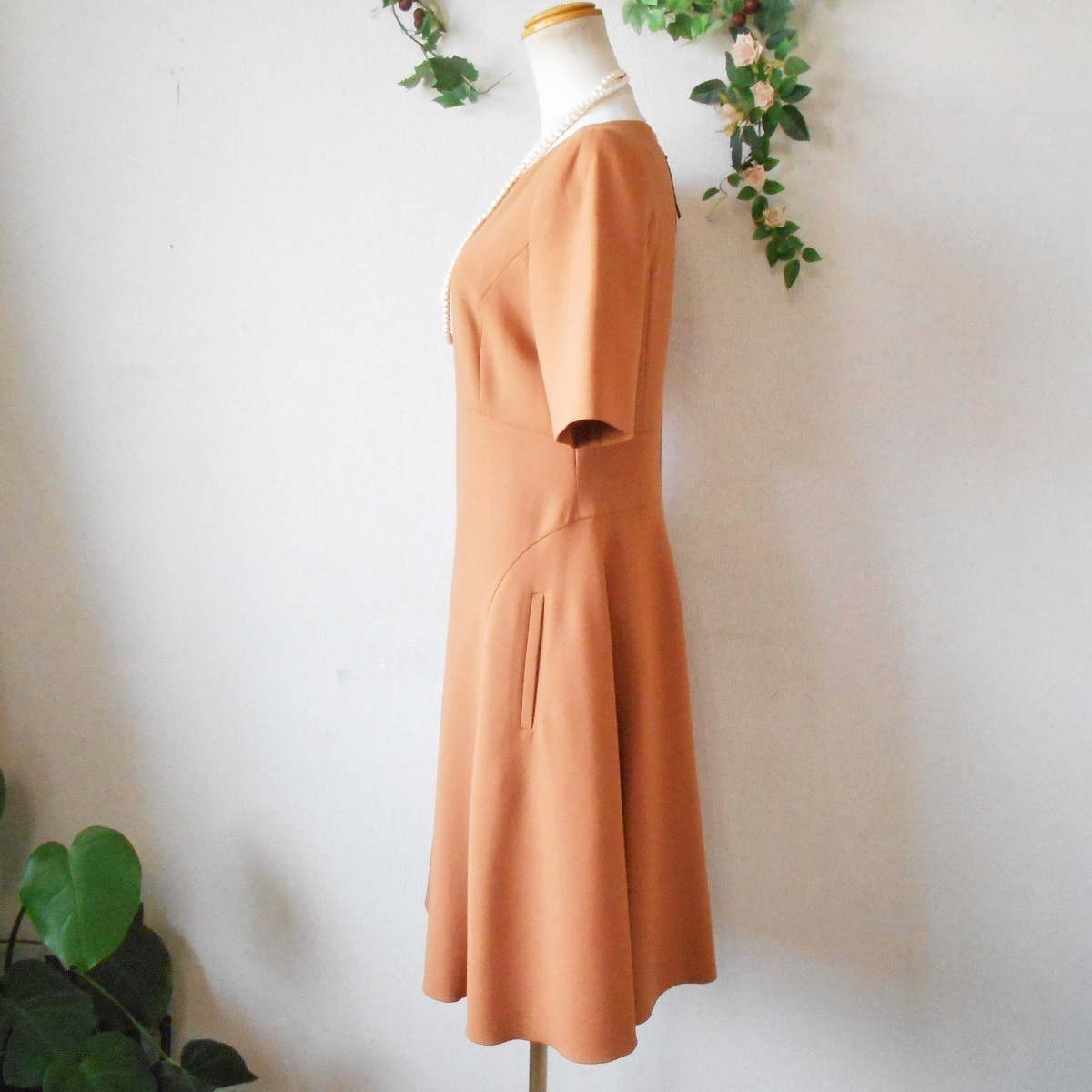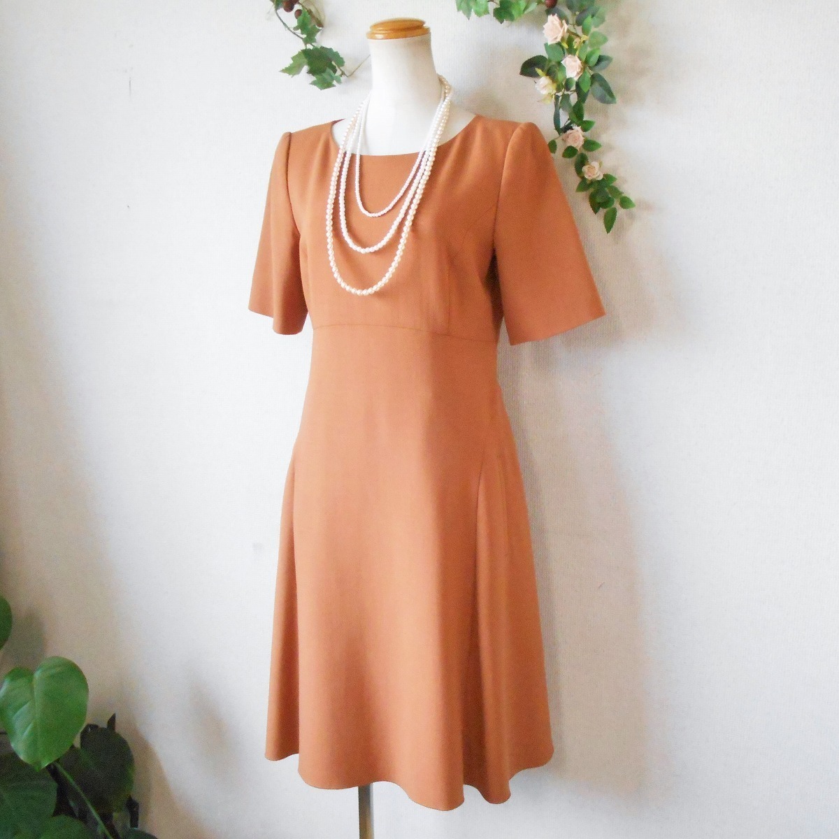 【ポイント】フォクシーのワンピースになります。お色はダークオレンジといった感じで、シンプルなデザインの上品な一着です。