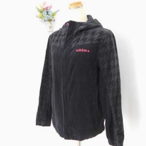 アディダス ネオ adidas NEO LABEL レディース S 長袖 パーカー コーデュロイ 黒 ブラック グレー 柄 ピンク トップス