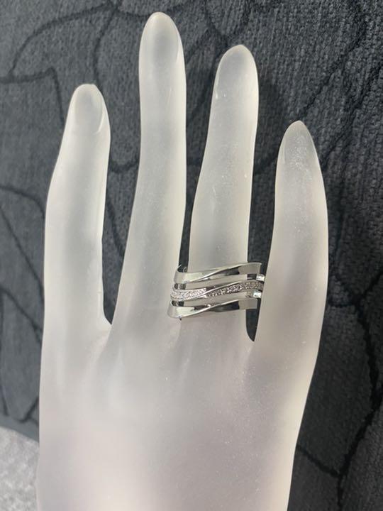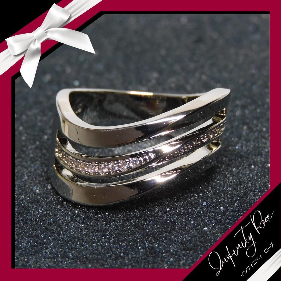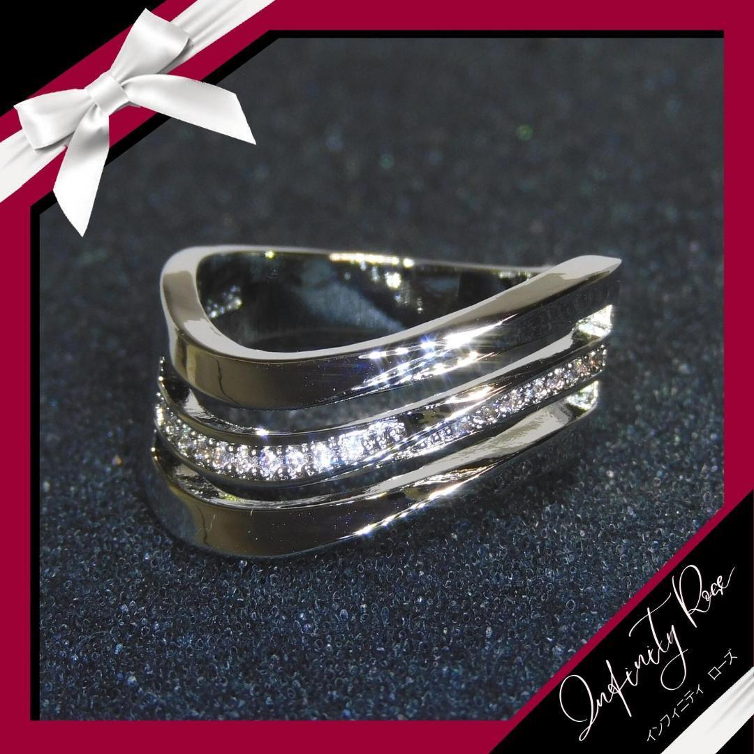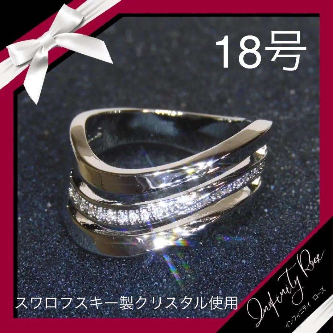 (1114)18号 変形上下 クリスタル 男女共有 ワイドリング 指輪 スワロフスキー製クリスタル使用