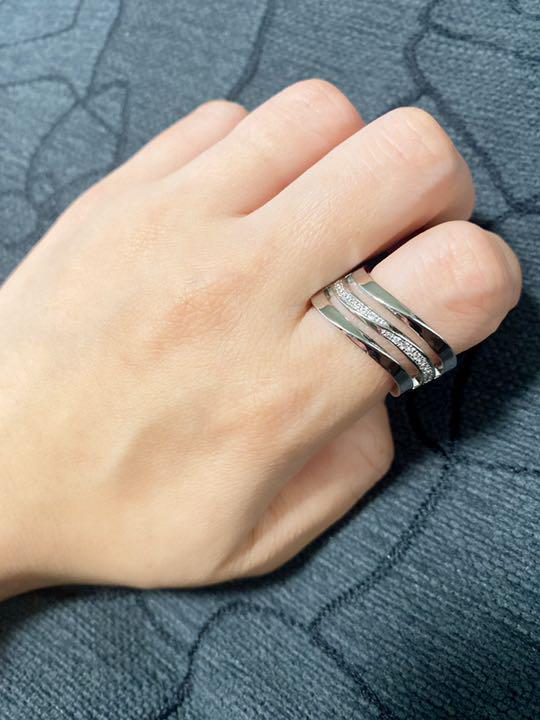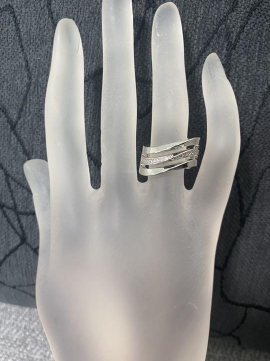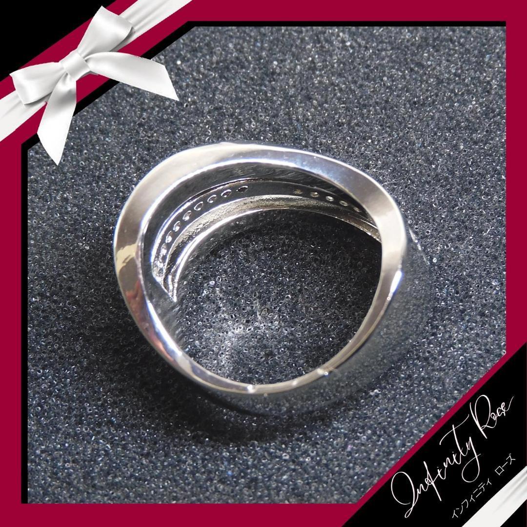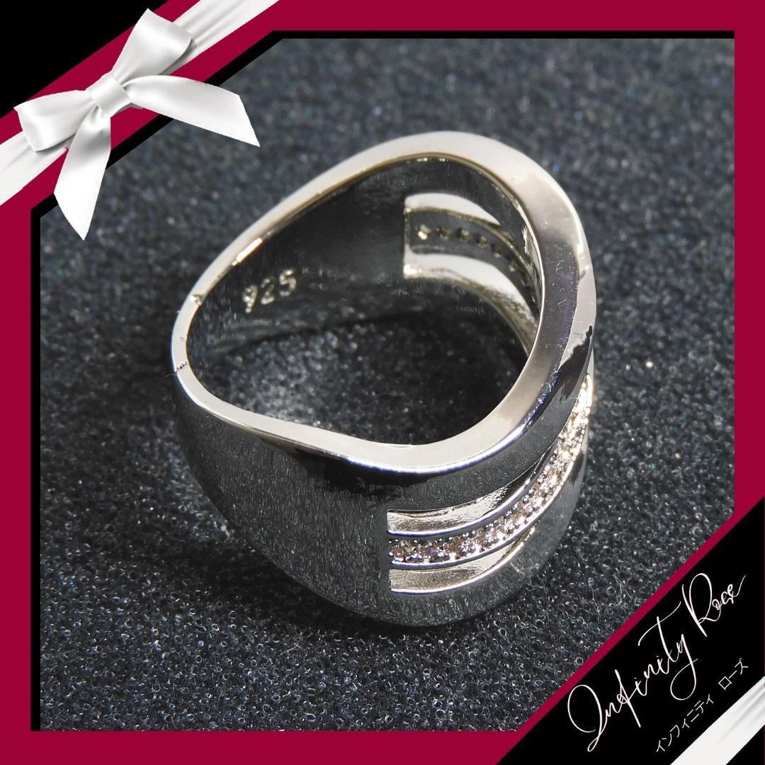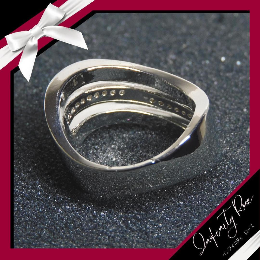 (1114)18号 変形上下 クリスタル 男女共有 ワイドリング 指輪 スワロフスキー製クリスタル使用