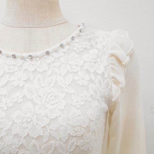【素材】本体 ポリエステル 65% レーヨン 35% レース 綿 57% ナイロン 41% ポリウレタン 2% 袖裏地 ポリエステル 65% レーヨン 35%