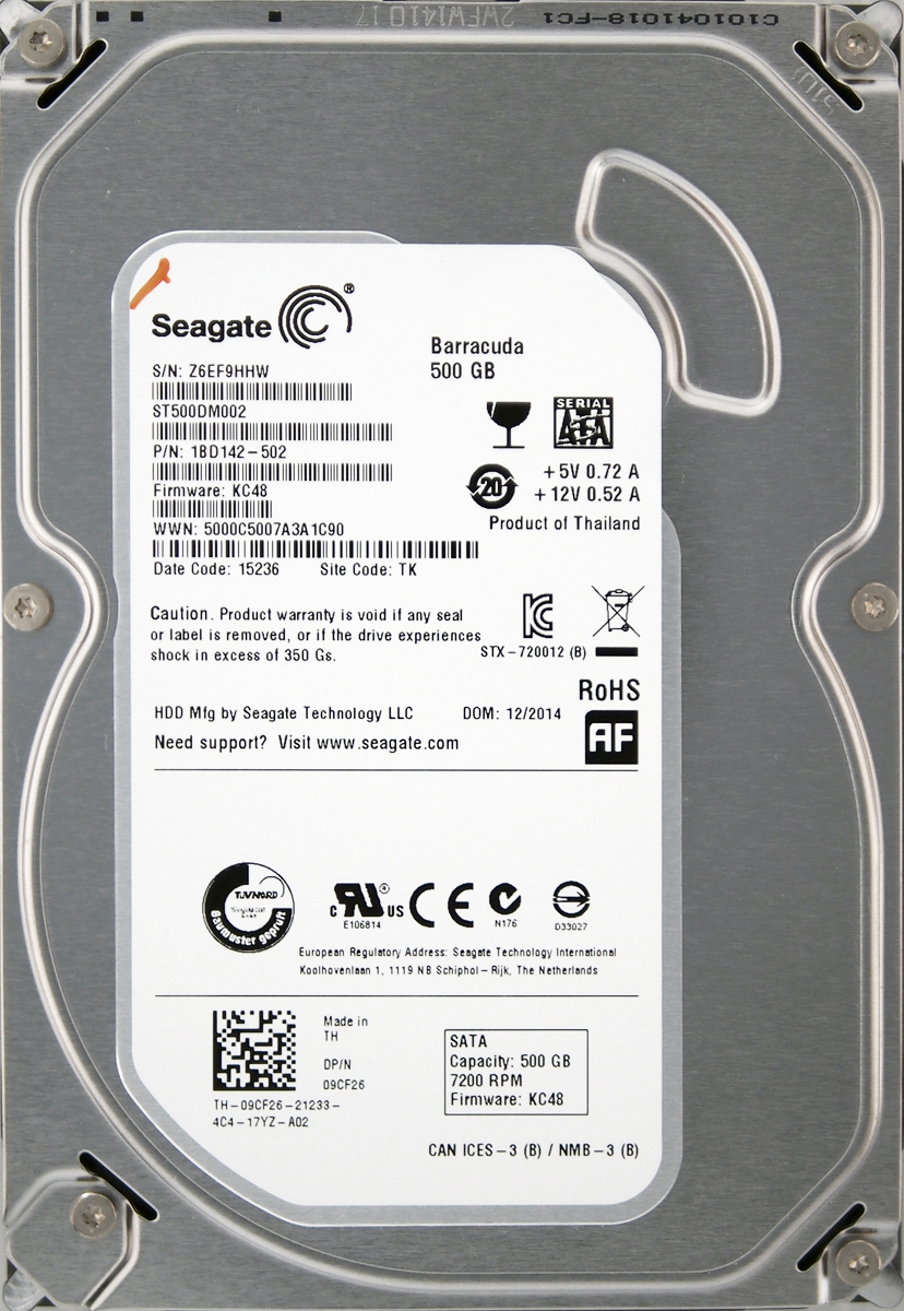 Seagate ST500DM002-1BD142 DP/N 09CF26 3.5インチ SATA600 500GB 1112回 12638時間