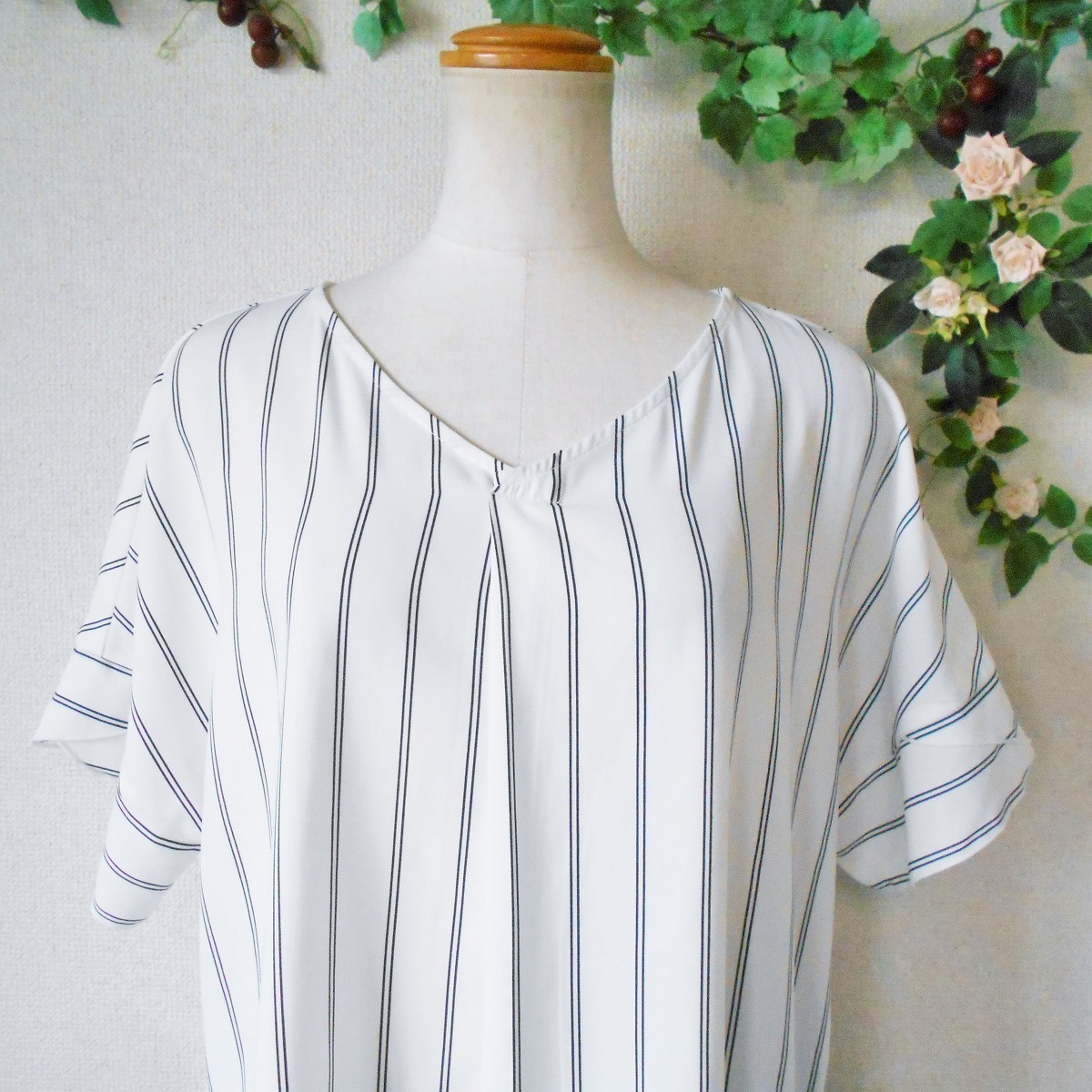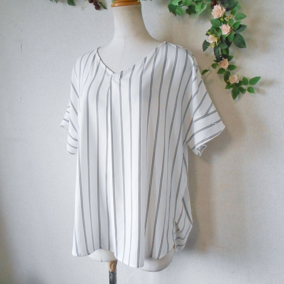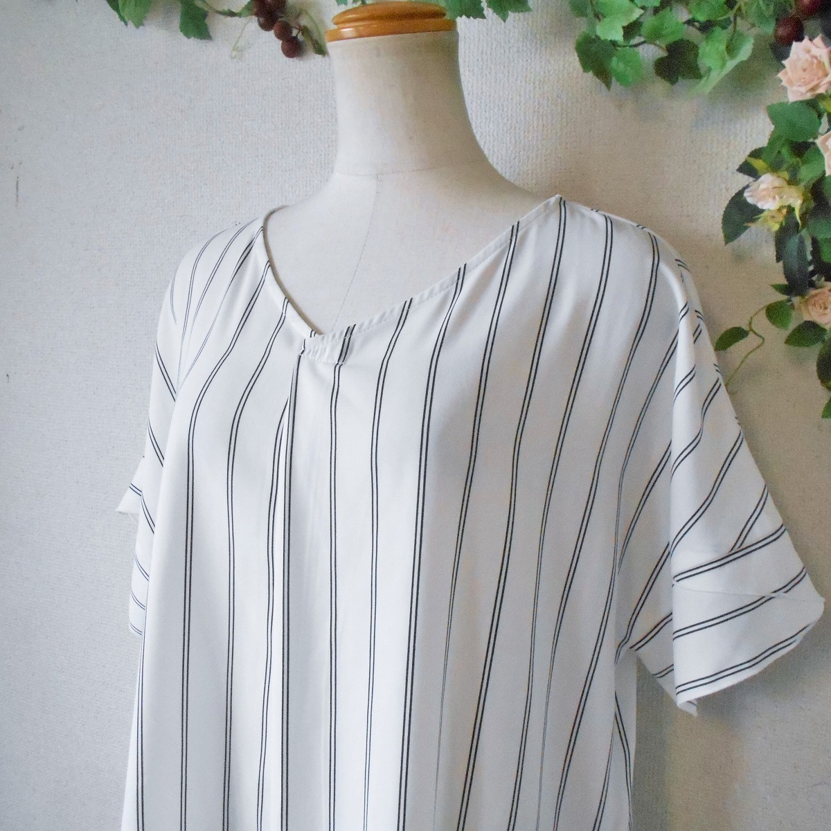 【ポイント】ロペピクニックのプルオーバーブラウスになります。お色は白色ベースで黒色のストライプが入っています。