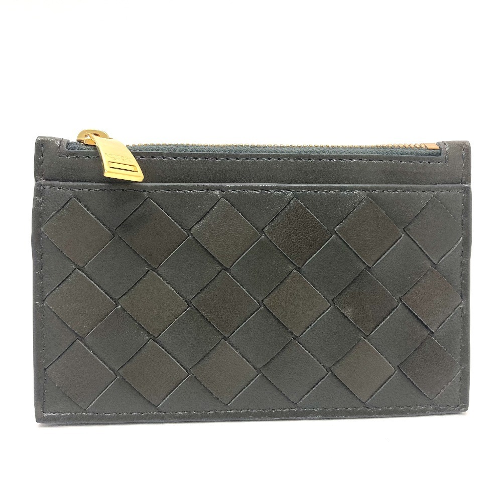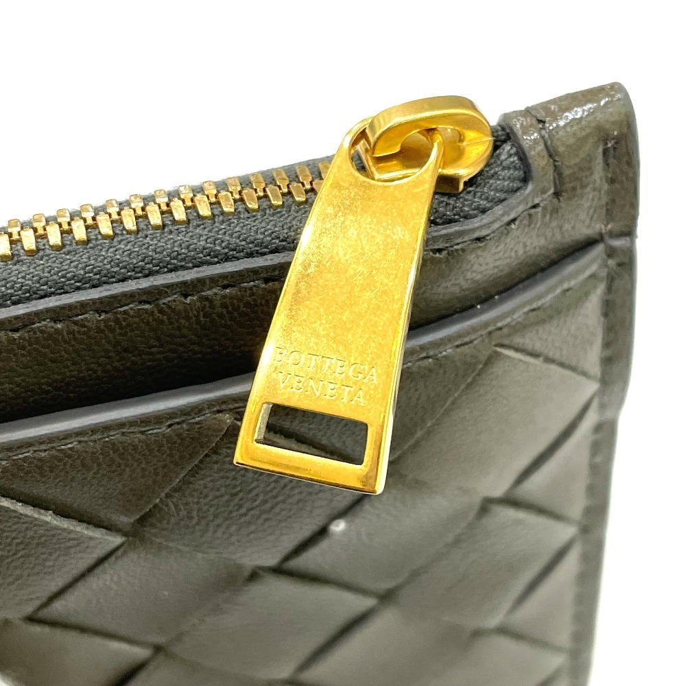 美品 BOTTEGA VENETA ボッテガヴェネタ イントレチャート キーポーチ 小銭入れ 小物 コインケース レザー カーキ系 ユニセックス【中古】