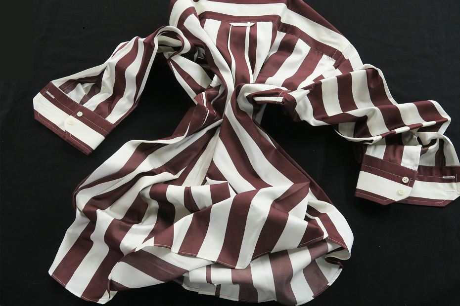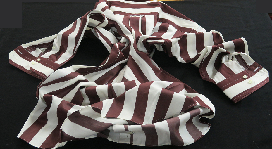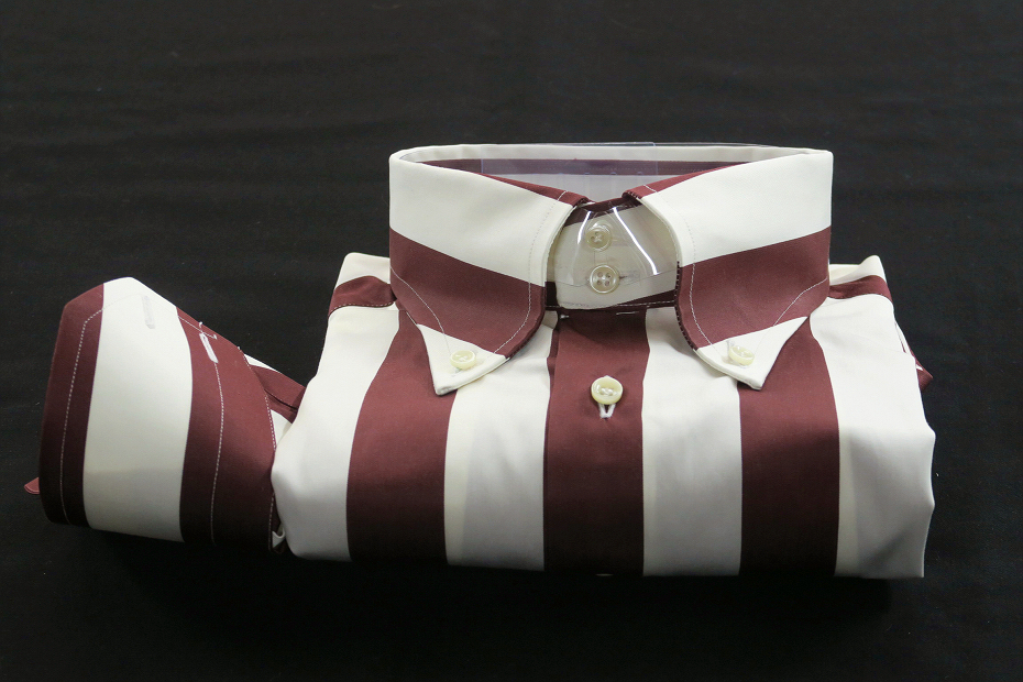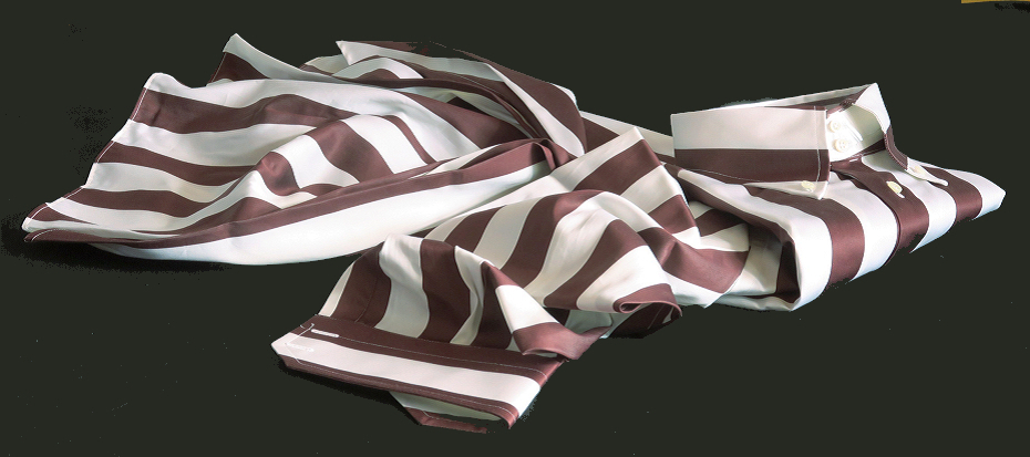 ★白は幾分黄色味を帯びた生成りだがすっきりした白、シッカリした色合いのワインカラーともブラウンとも言えそうなストライプがシャープにくっきり快感・・・❤