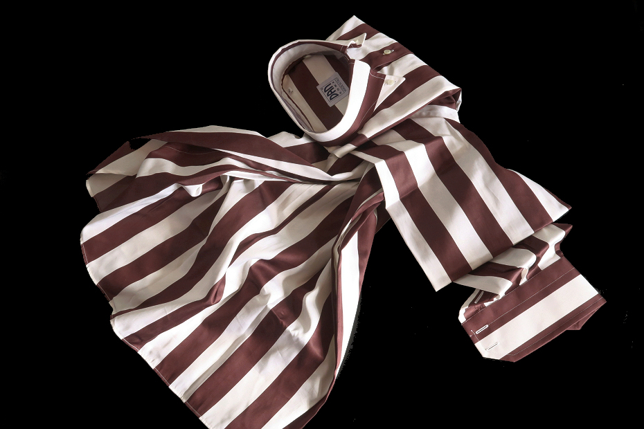 ★イタリアDANROMAドゥエボットーニ limited Edition 863 DA014 見逃せない!上品に大胆に幅広ストライプワインカラーブラウン L 42-93