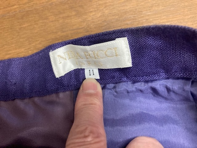 NINA RICCI ニナリッチ  (PARIS) 紫 パープル 麻スカート  バックスリットあり 裏地あり  11号サイズ (USED)
