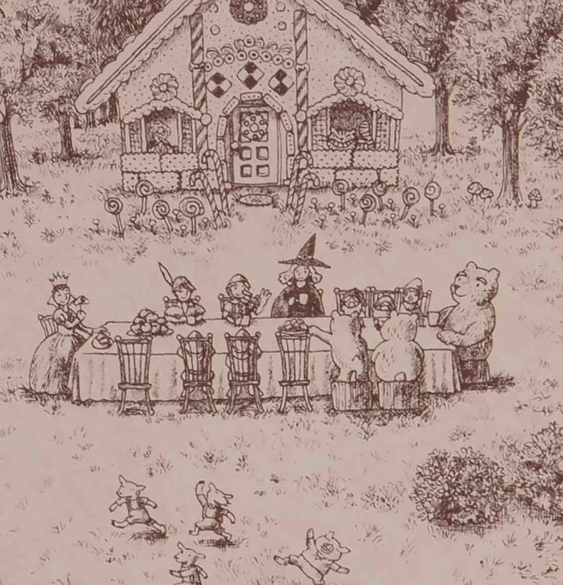 綿両面ふろしき 西洋のおとぎ話〈トランプの舞〉約90cm(ワイン包み、一升瓶に)y-097-amr90-02