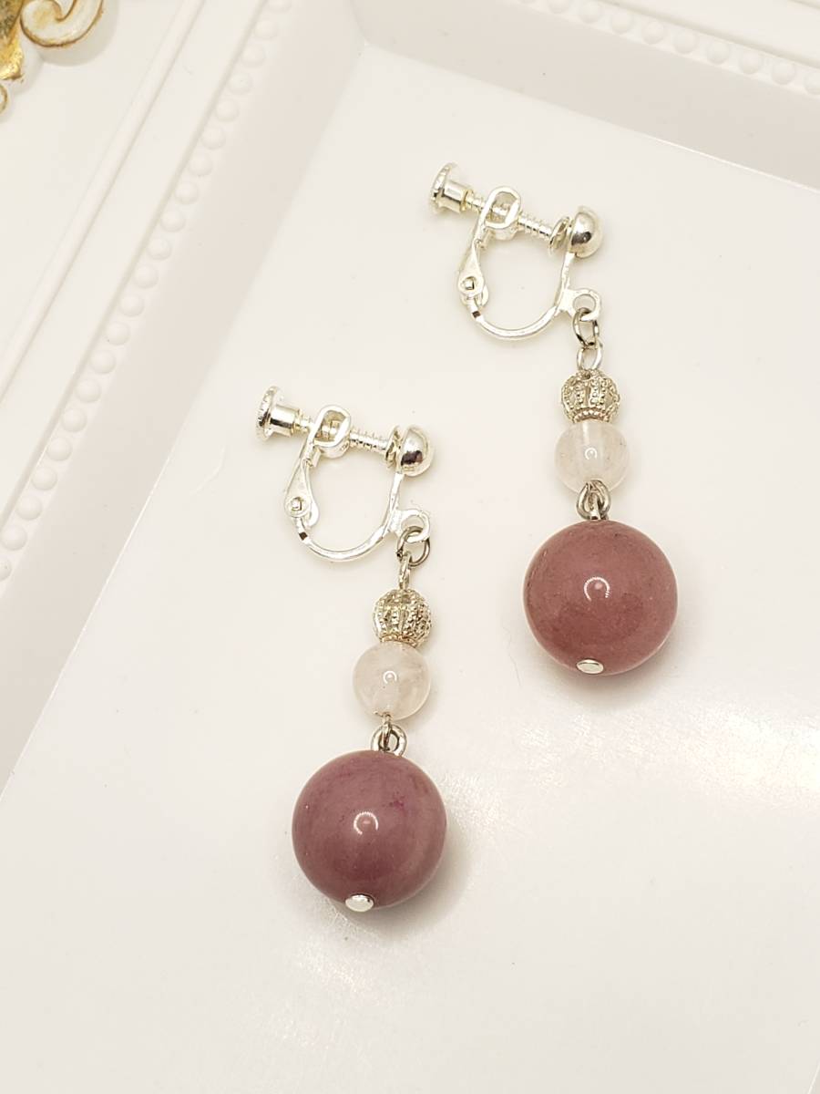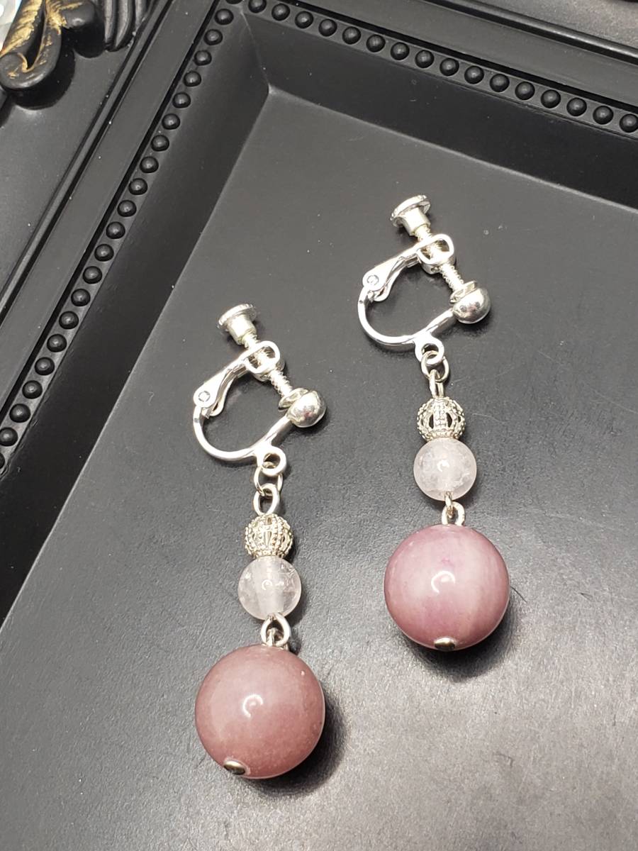 ★ハンドメイド イヤリングorピアス A917 樹脂フック・バネ(クリップ)式イヤリング金具など変更無料 ピンクオパール★