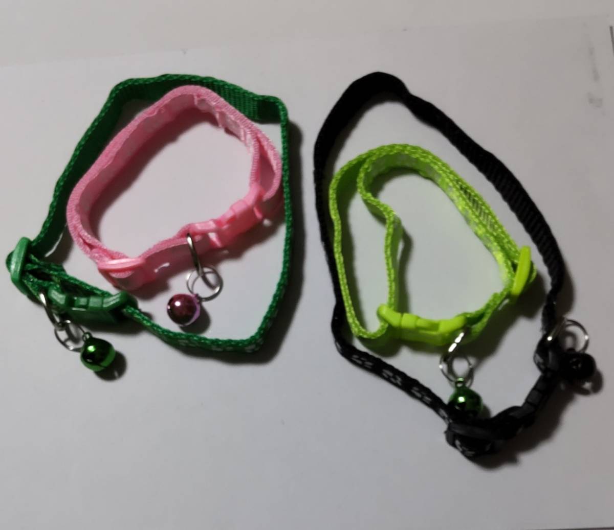 【新品】すごく可愛い!(B)首輪・犬猫兼用・4本セット(黒色、黄緑色、ピンク、グリーン)