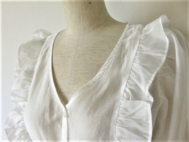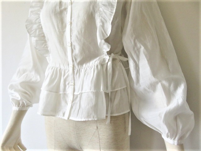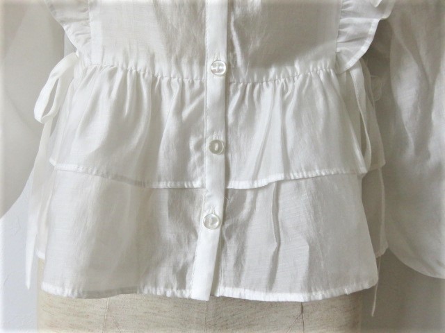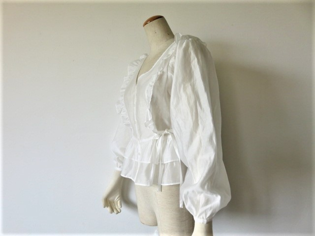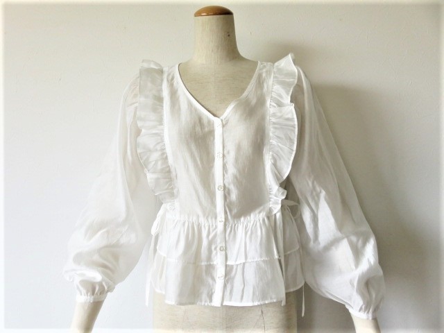 【 FREE'S MART フリーズ マートの高級 フリル ブラウス、お色は光沢感ある白です。