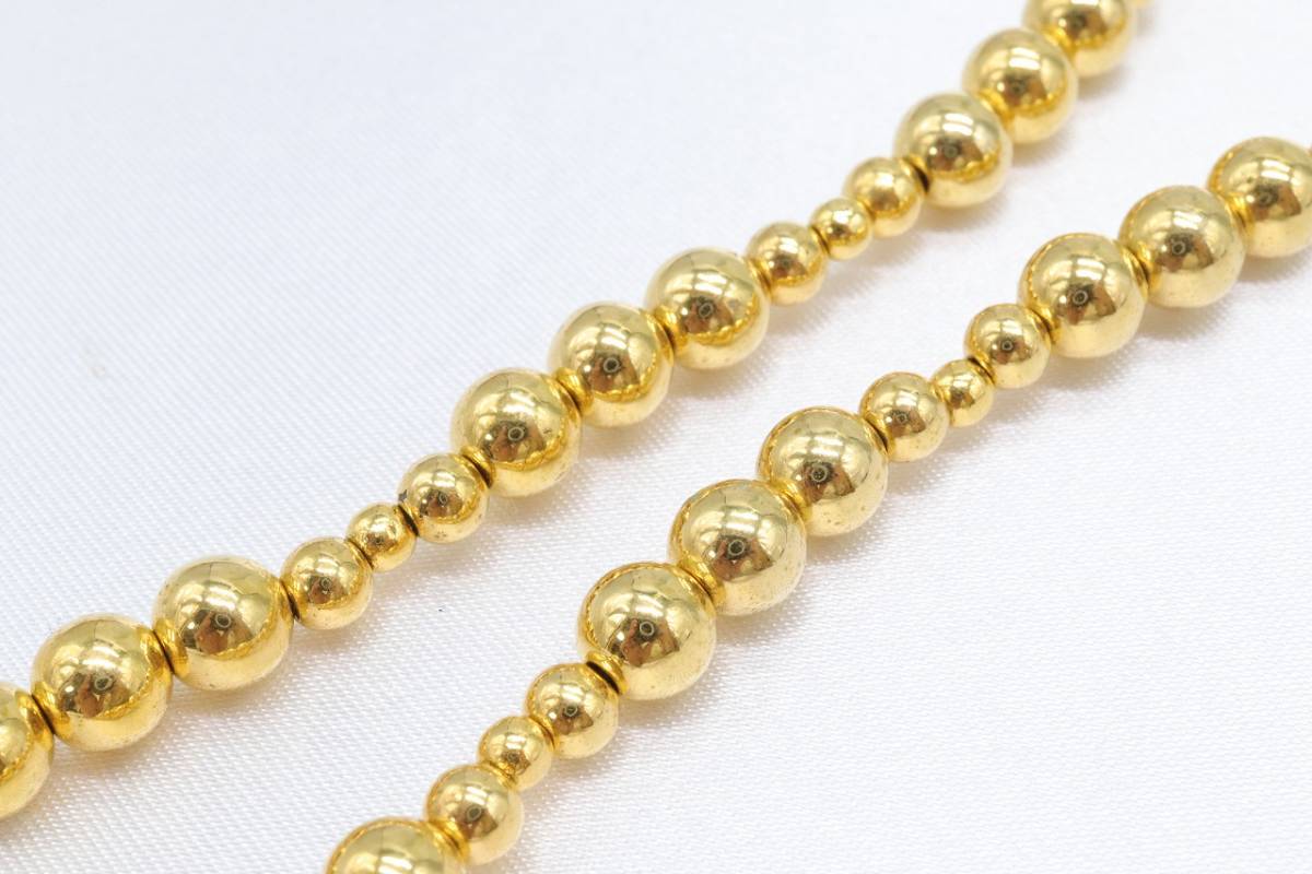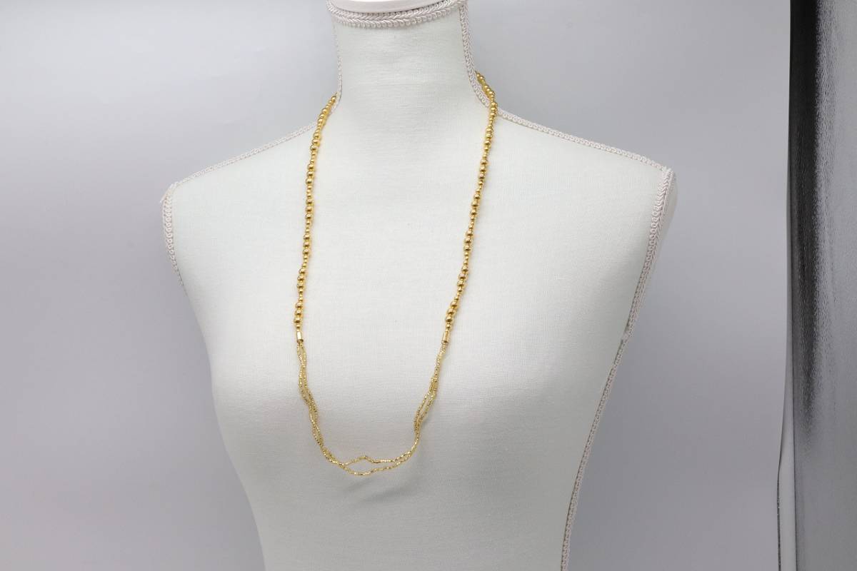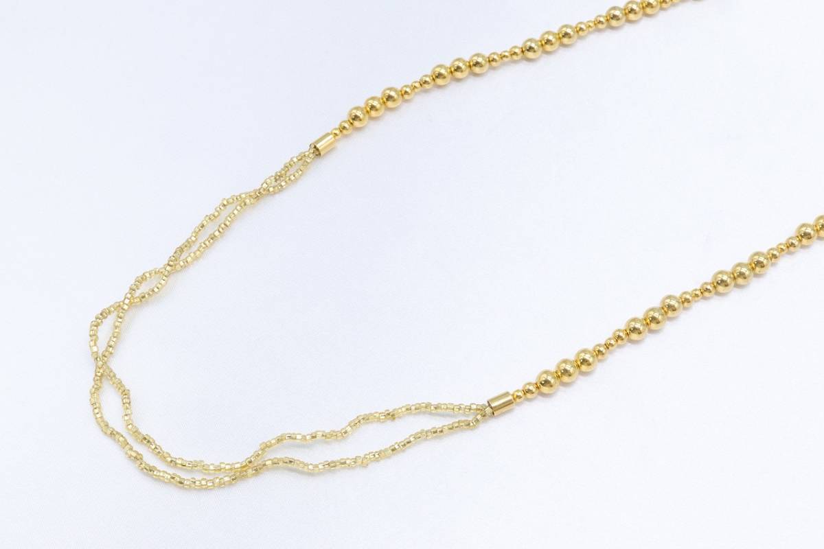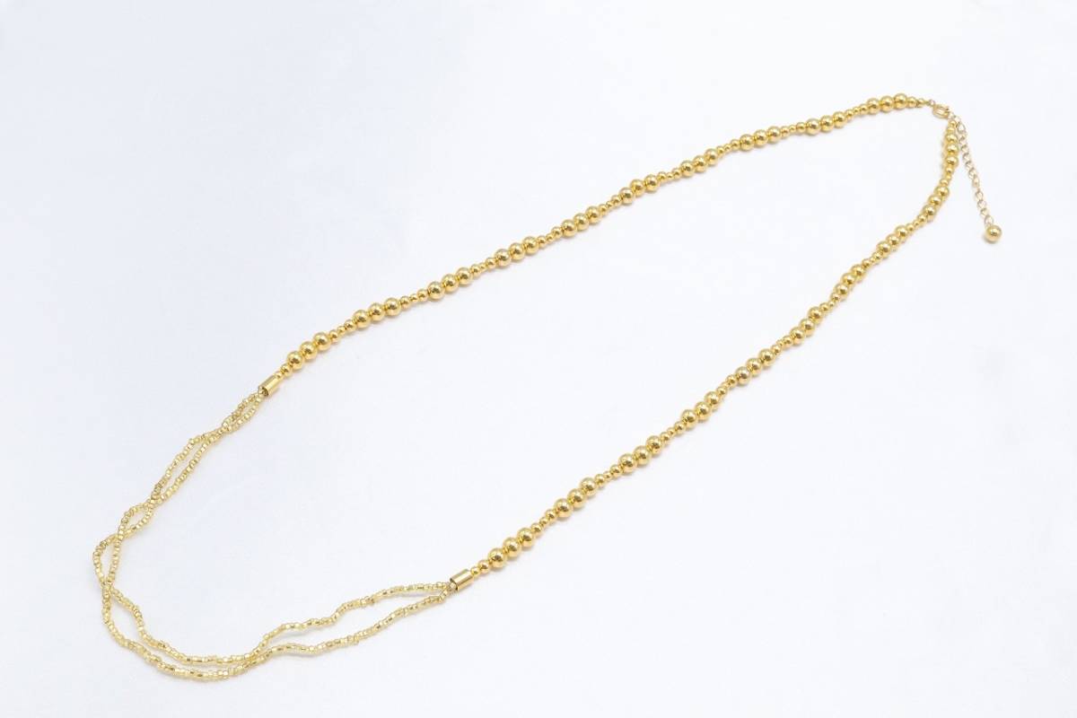 【KU02】ゴールドカラー ビーズ デザイン ロング ネックレス 未使用保管品【送料全国一律198円】