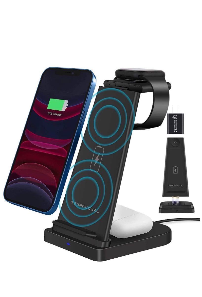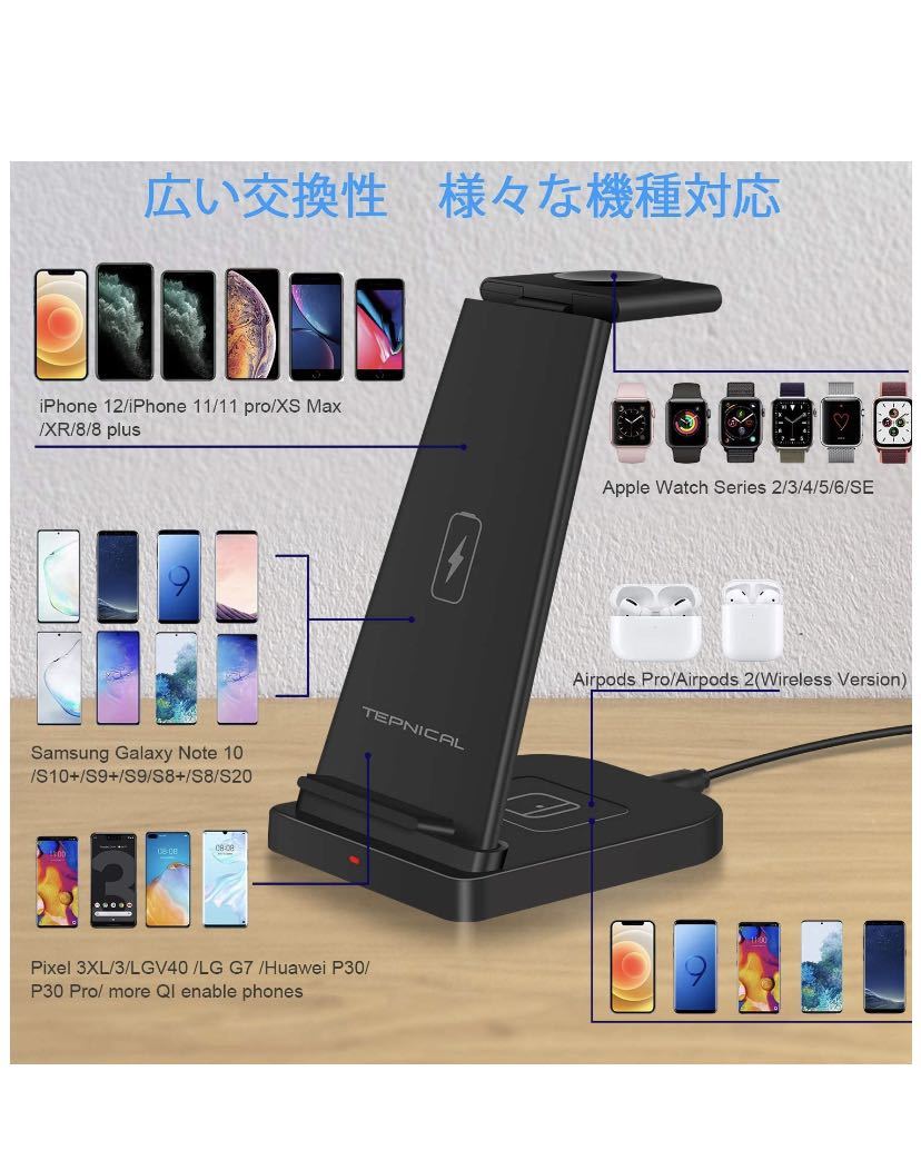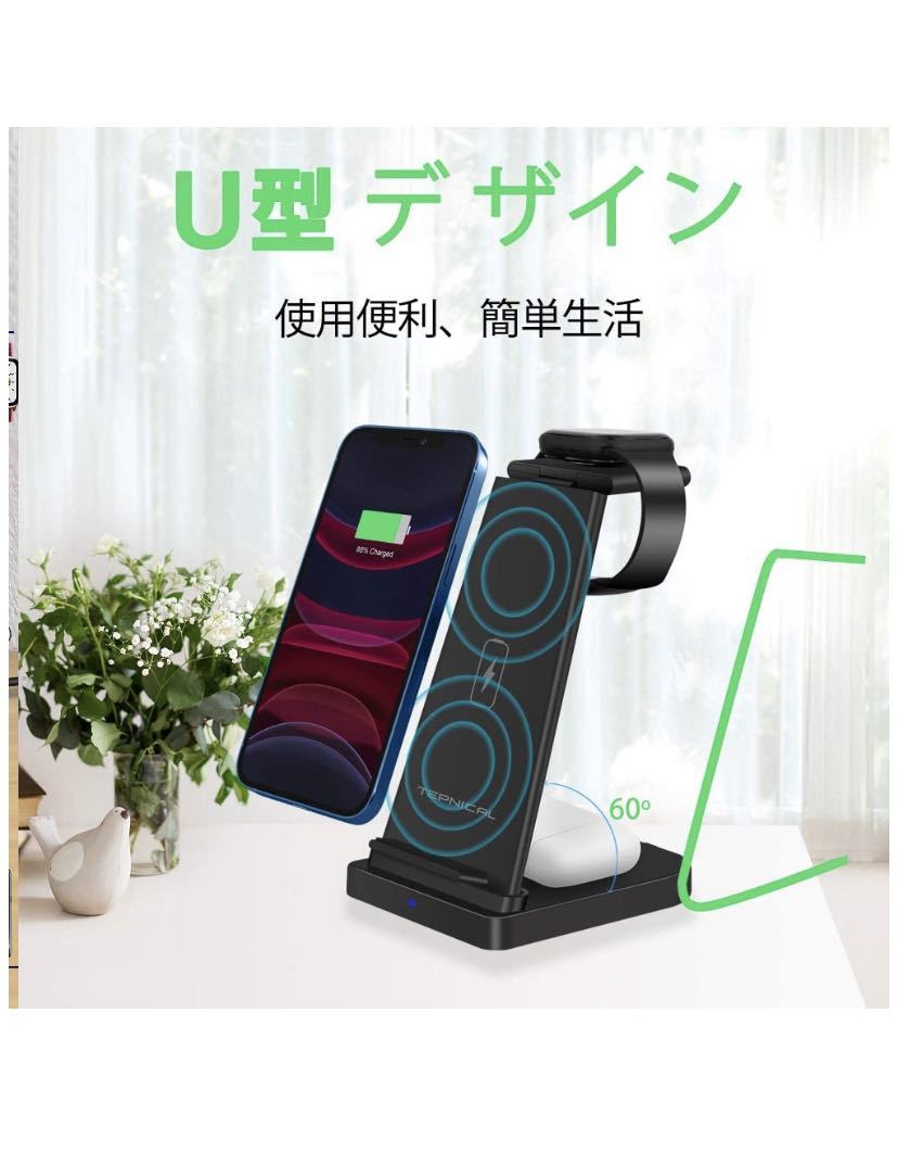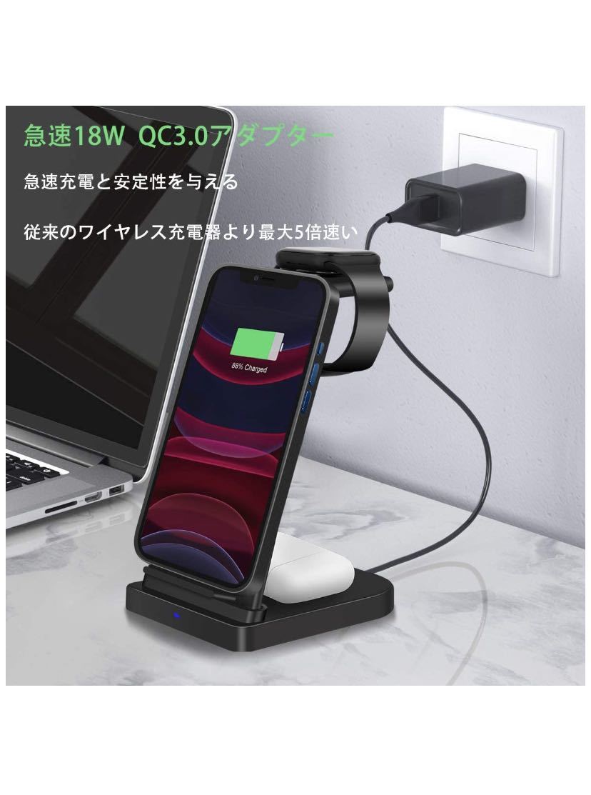 【急速3in1ワイアレス充電器】TEPNICAL ワイヤレス充電器はQC3.0充電アダプター付き、同時にスマホ、AirPods、iWatchに充電出来ます、ワイヤレスの利便を楽しんで、絡み合ったケーブルに別れを告げます。家庭と仕事にピッタリです、置くだけで充電可能になります、急速なワイヤレス充電の体験を現実できます。