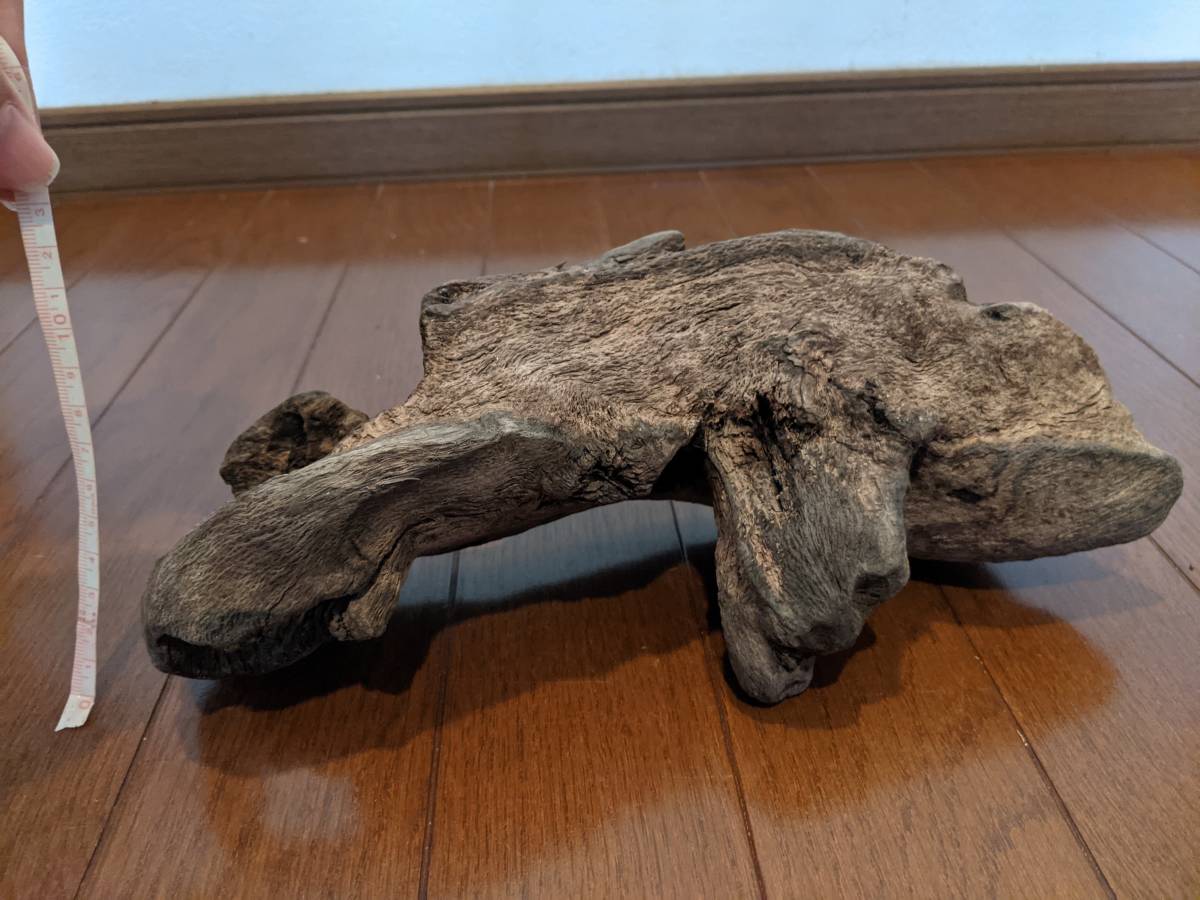 横に寝かした状態で流木サイズ  全長が約28cm×全幅約11cm×高さ約11cmです。素人採寸です。