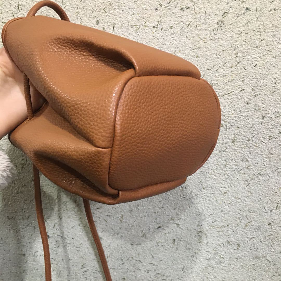 柔らかくて軽いレザーは、シボ加工と上品なキャメルで高見えします。