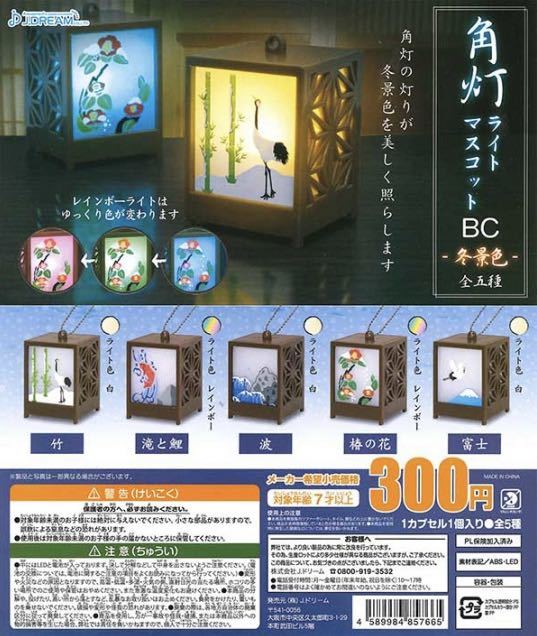 ★ミニチュア★角灯ライトマスコット 冬景色 ガチャガチャ 滝と鯉 ライト色 レインボー