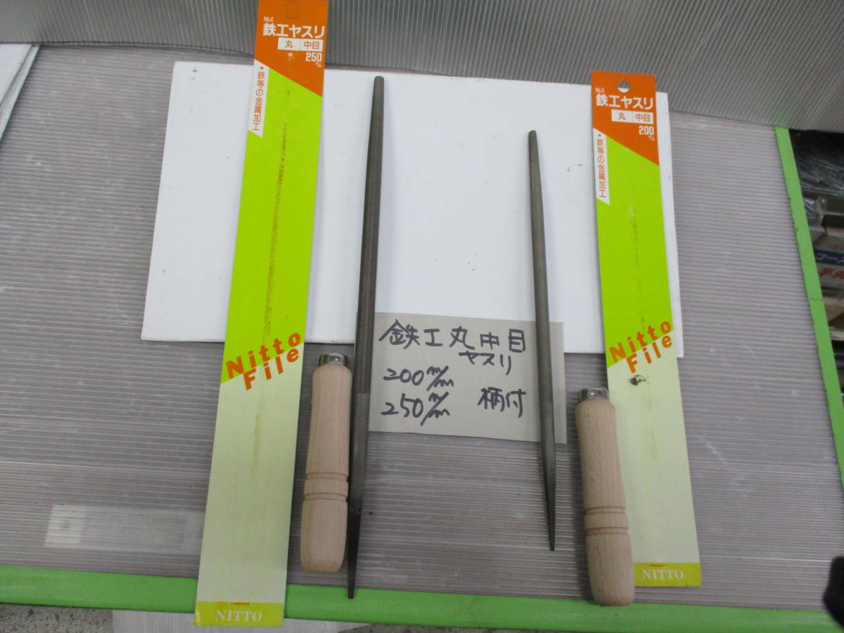 鉄工丸中目ヤスリ 200㎜・250㎜セット 柄2本