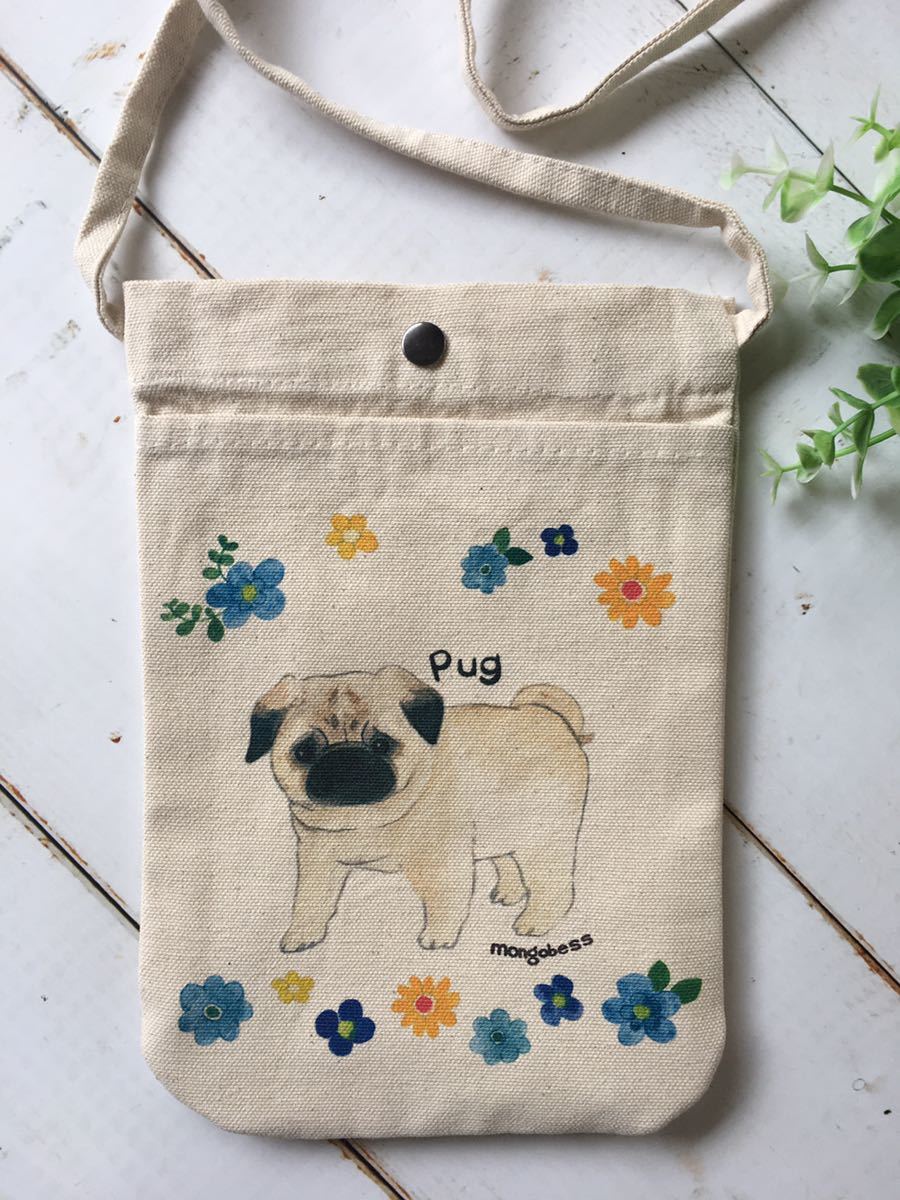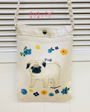 かわいい犬のサコッシュ♪パグ わんちゃんシリーズ ポシェット 送料込み
