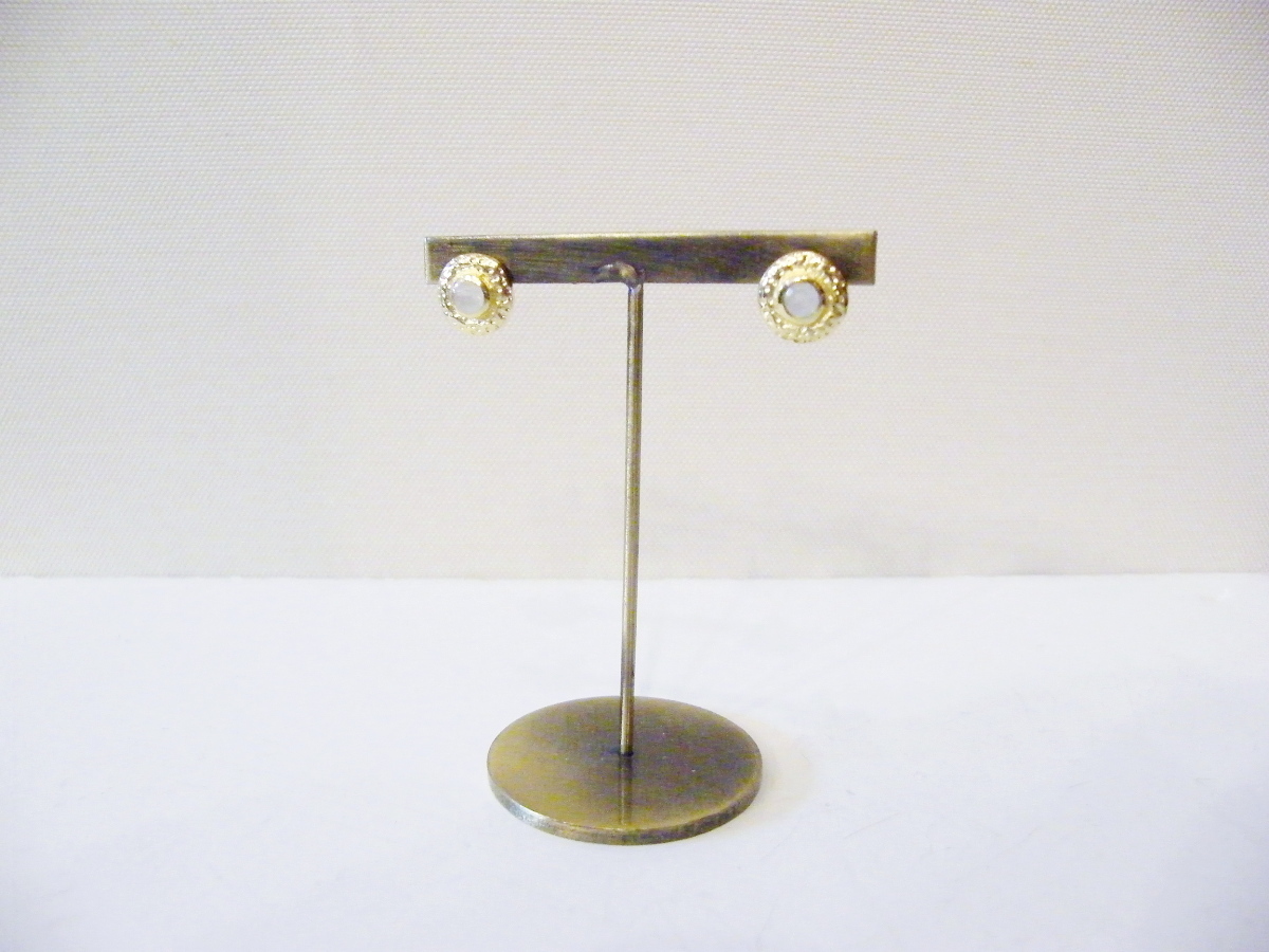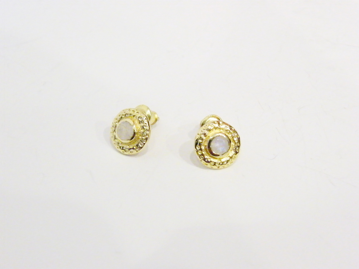 こちらは細工が美しいゴールドに、天然石が一粒付いたピアス。