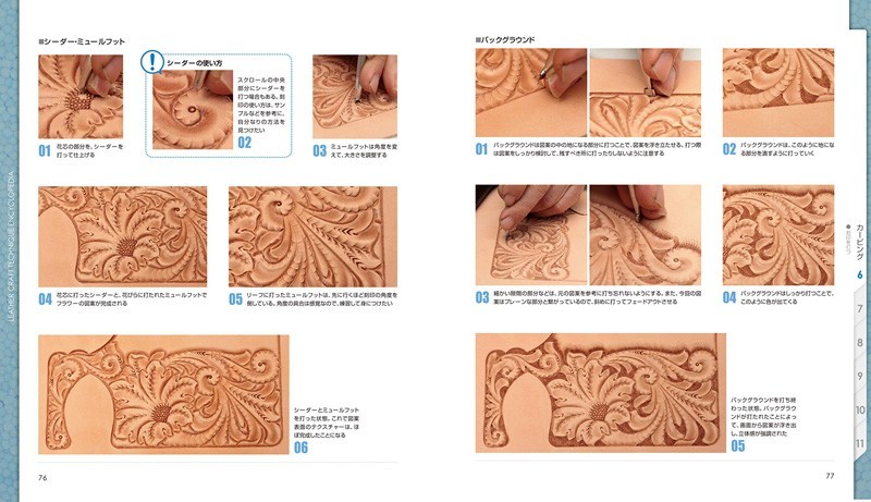 レザークラフト技法事典3の誌面を、約2倍に拡大した読みやすい大文字版です。