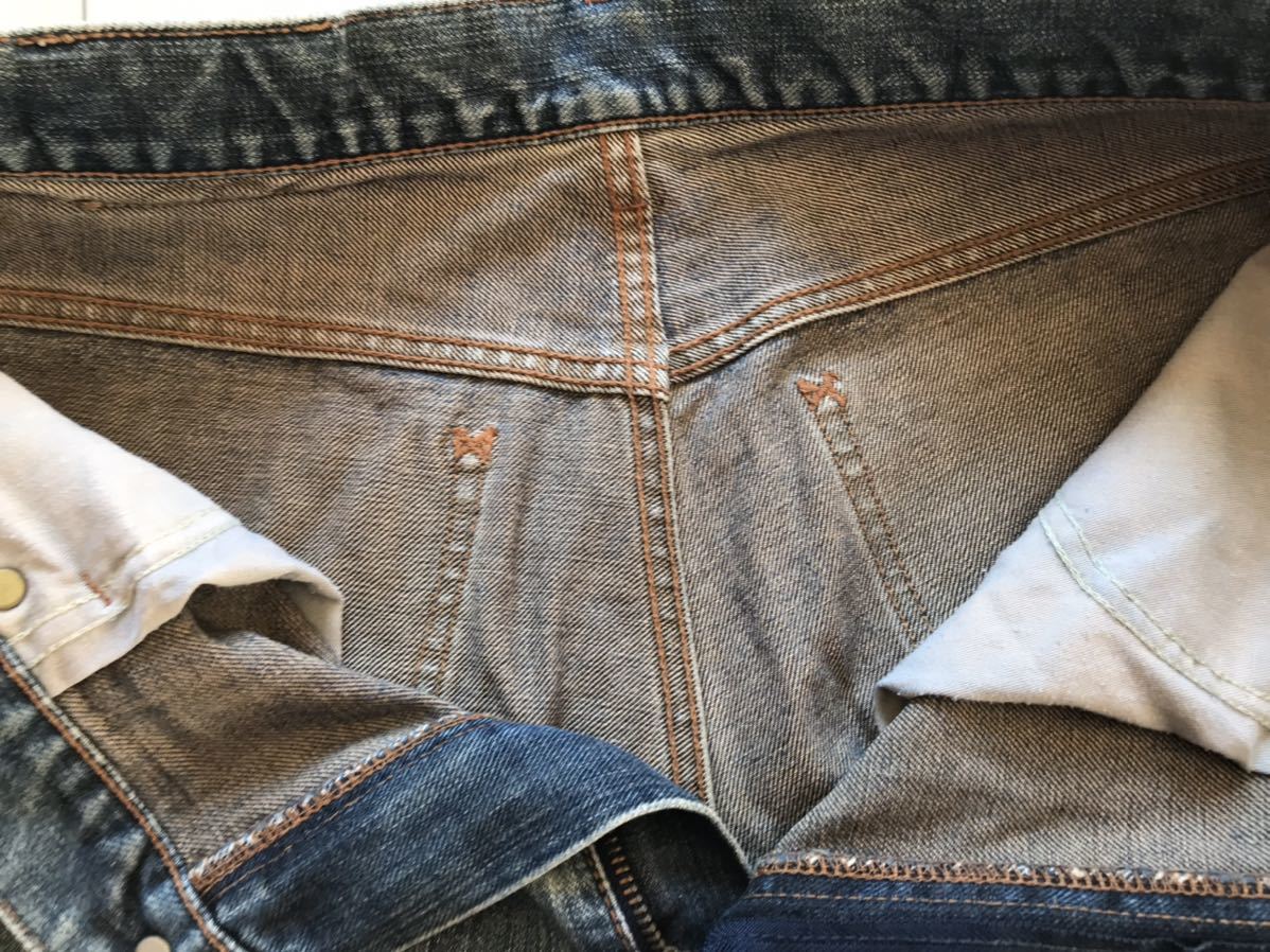 (後ろ向きウエストの一番上からバックポケットの中央を通してカカトまで)