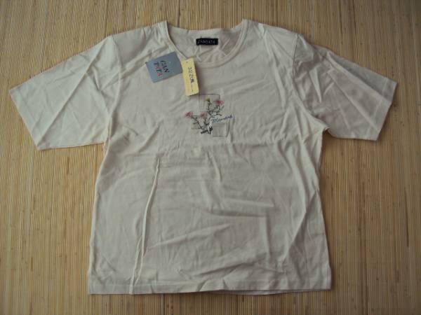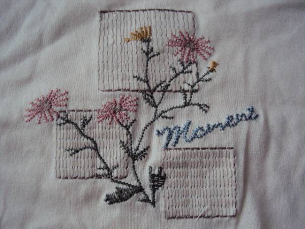 こちらの商品は、東京のお店で購入した、ナチュラルデザインの半袖カットソーになります。サイズの方は、M~Lのフリーサイズです。新品未使用品になります。中央部分にあるお花の刺繍使いがとっても可愛いです。夏は1着で、これからの季節は重ね着用ポイントとしていかがでしょうか。当方、ただいま引っ越しの準備に伴う、荷物の整理を行っております。どうぞ宜しくお願い致します^^*