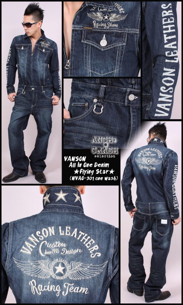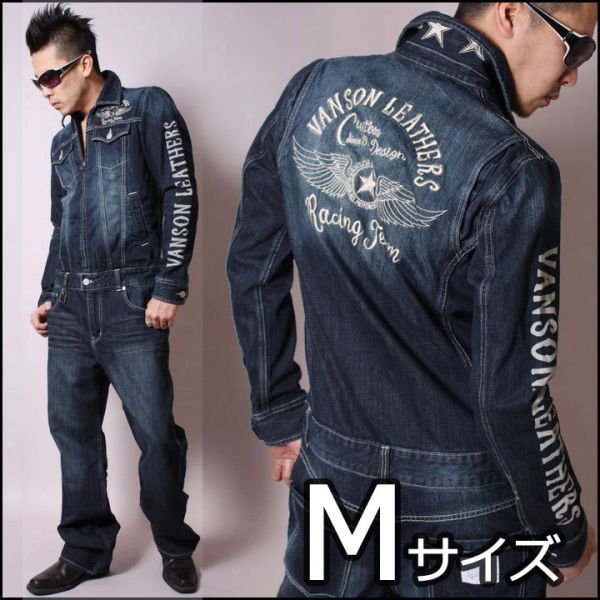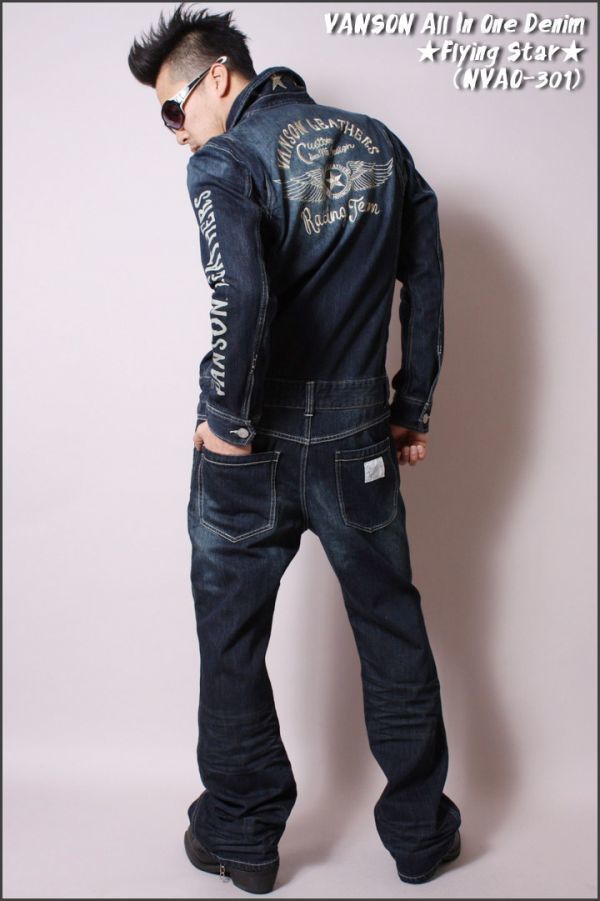 バンソン VANSON オールインワン デニム つなぎ flying star NVAO-301 ワンウォッシュ(濃紺)【Mサイズ】 オーバーオール ツナギ